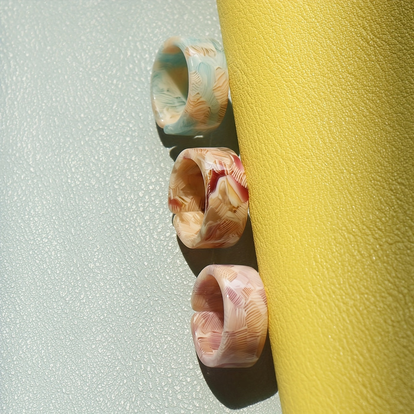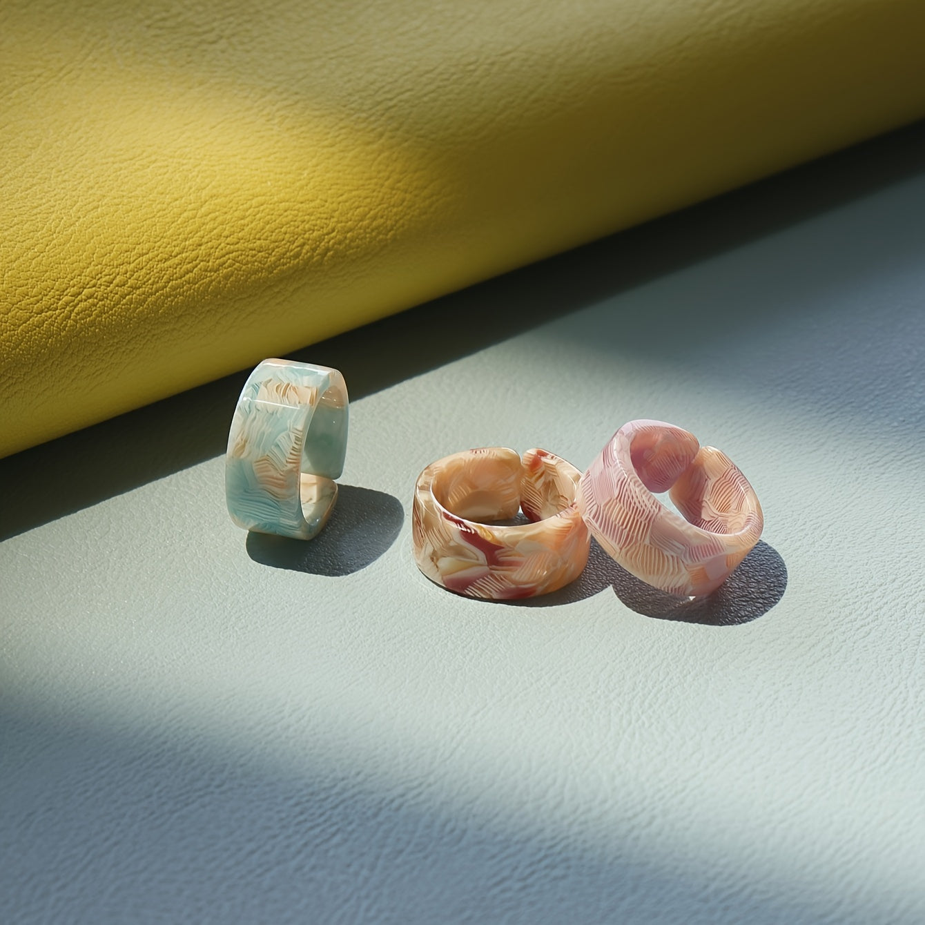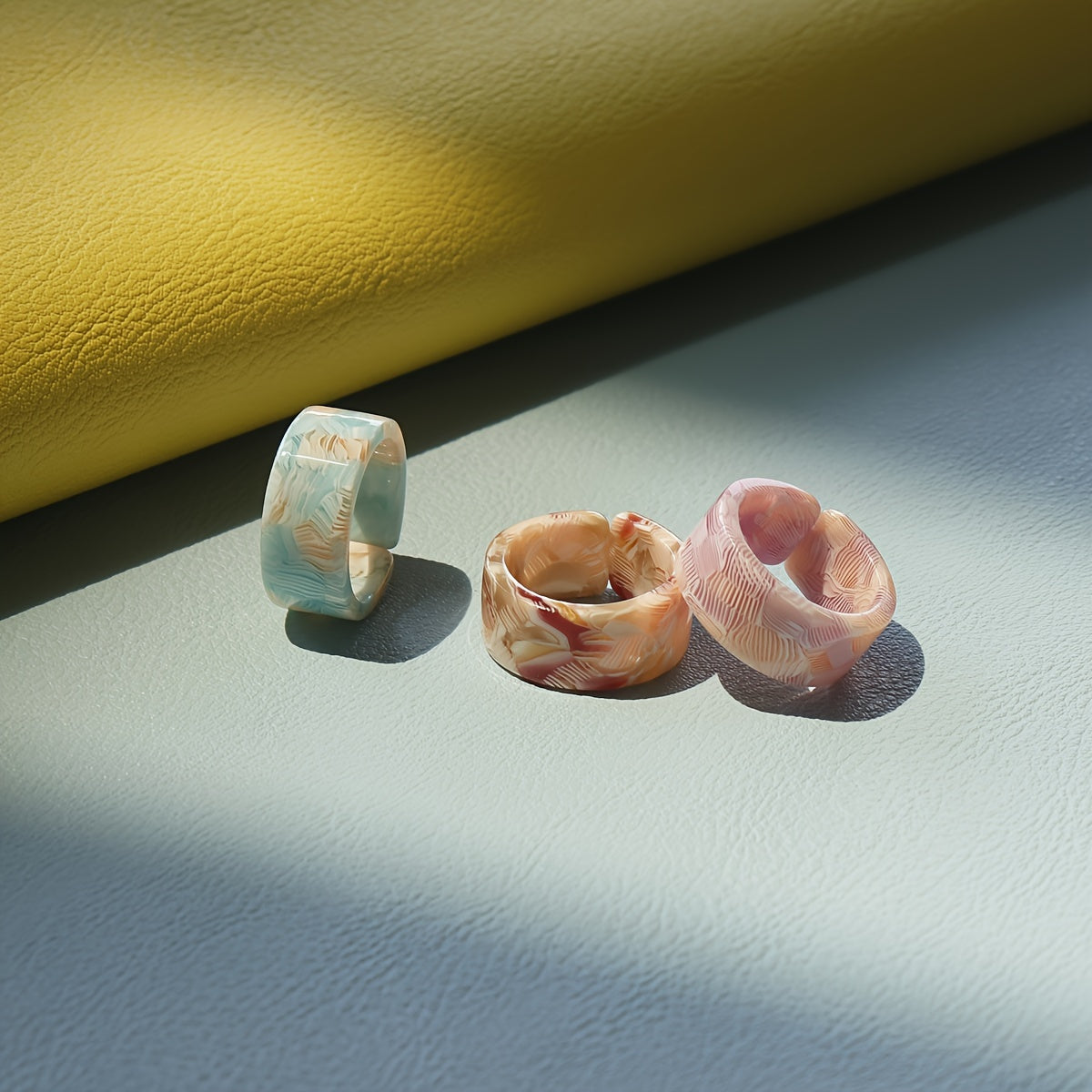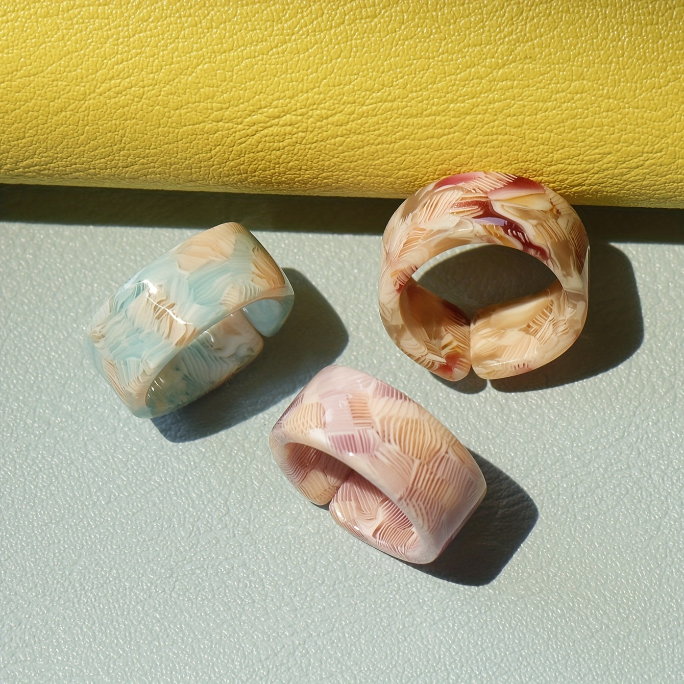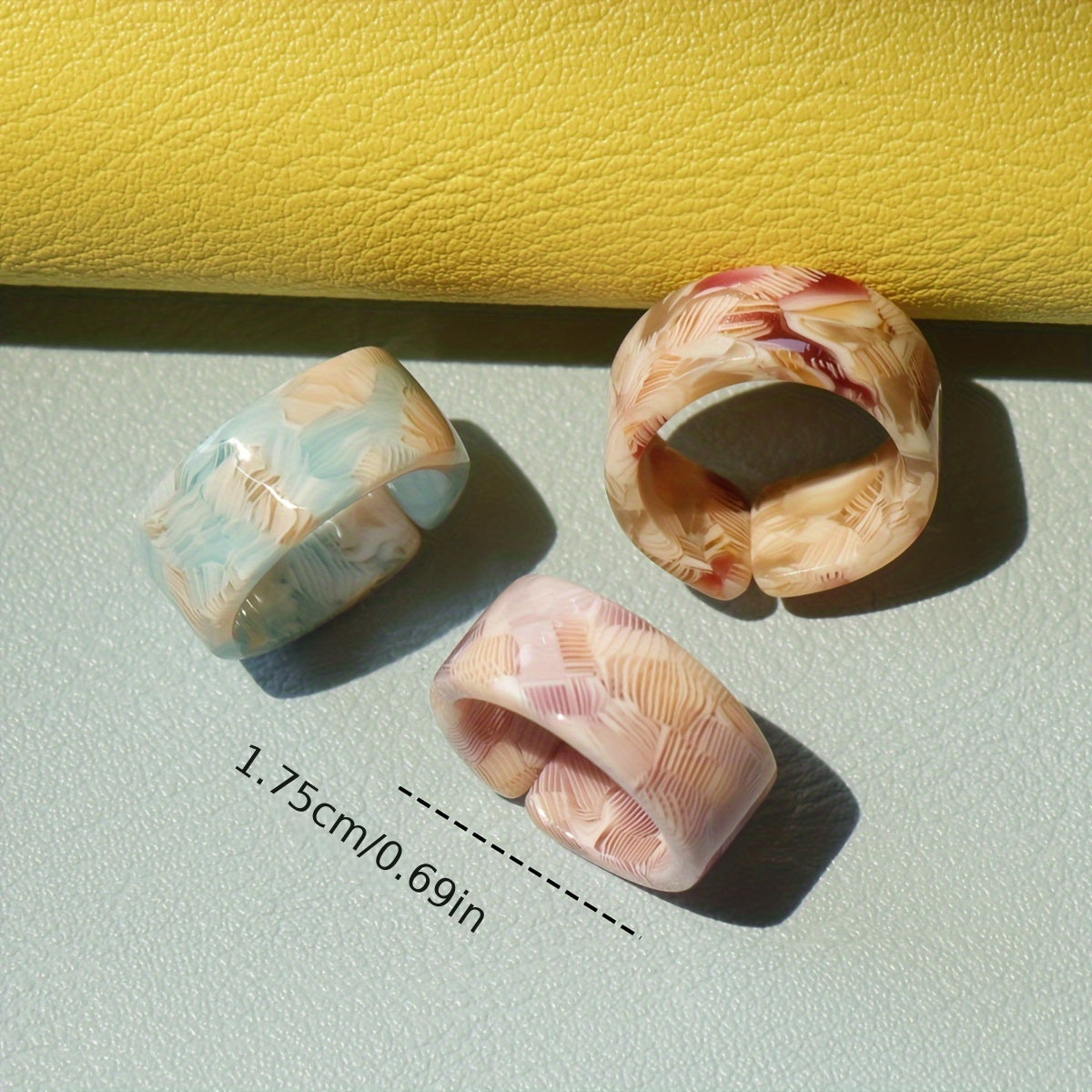 3pcs Colorful Acrylic Open Ring Set for Women's Vacation Party