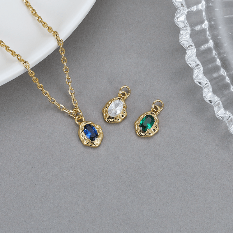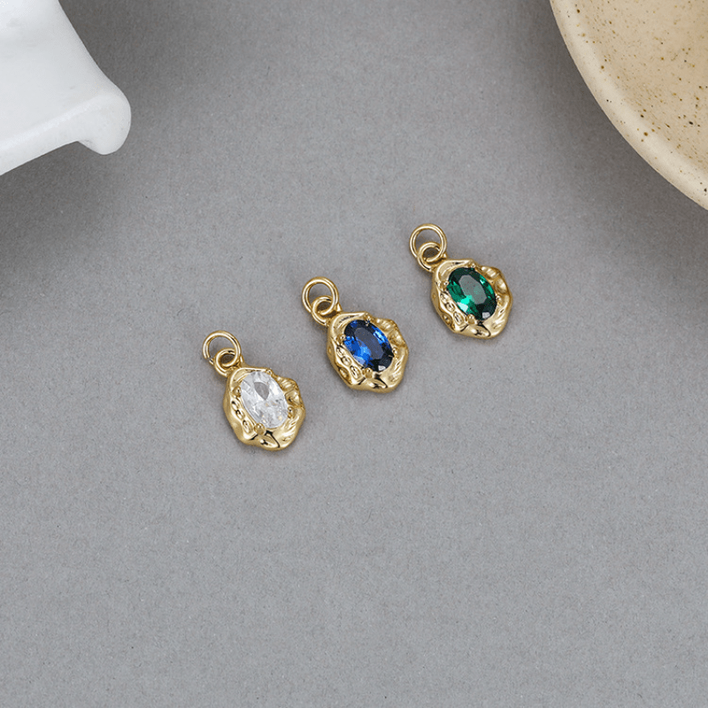 This 3-piece set includes pendant earrings, bracelet, and necklace featuring colorful rhinestone decoration with irregular golden brass bottoms. Perfect for DIY jewelry projects.
