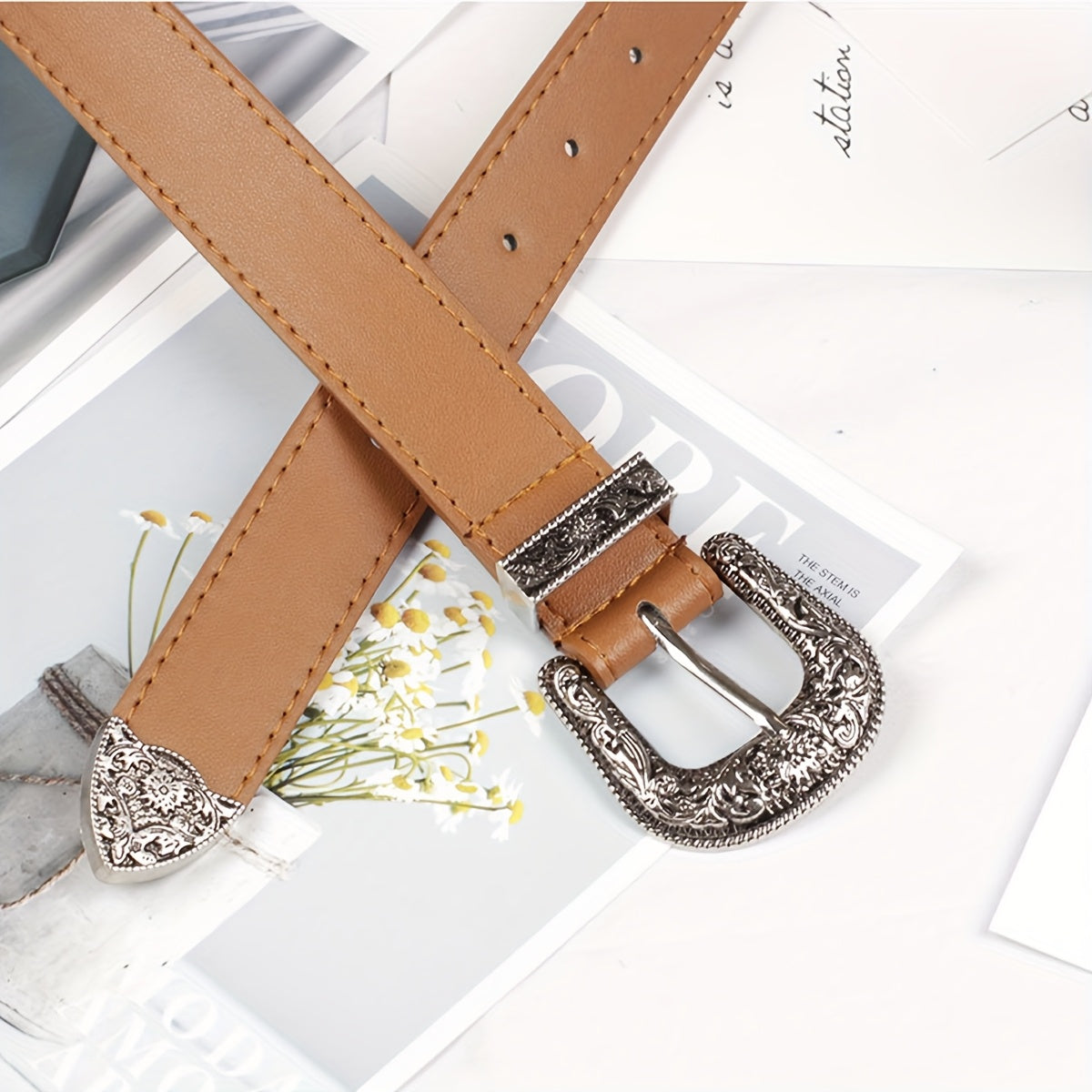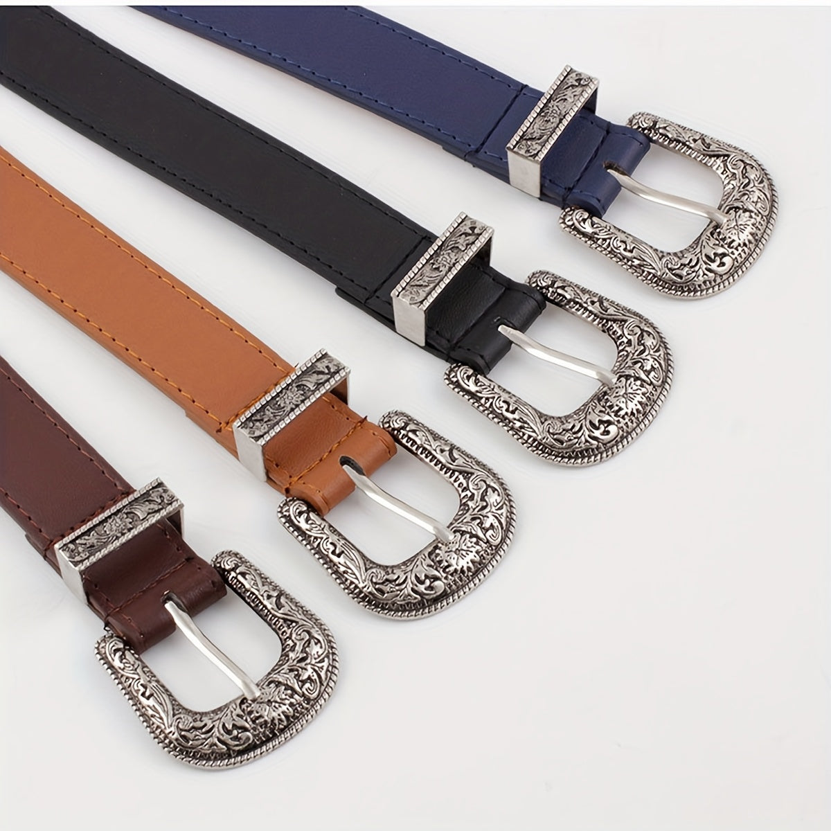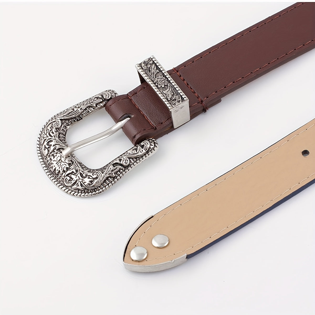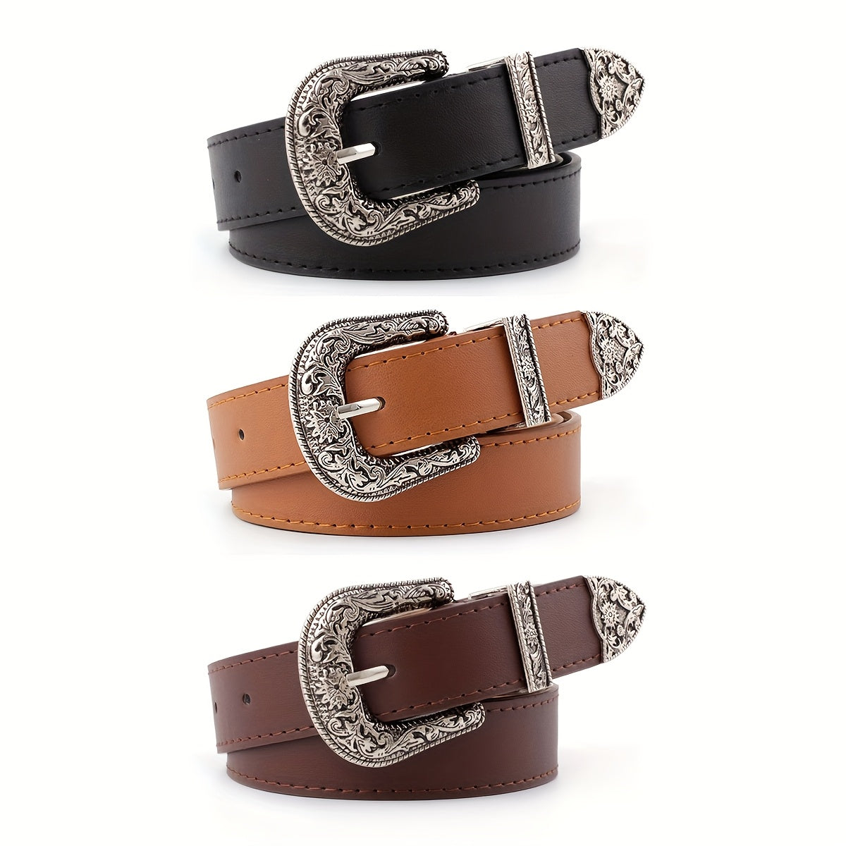 3pcs European American Style Carved Belt Set Vintage Casual Belts Faux Leather