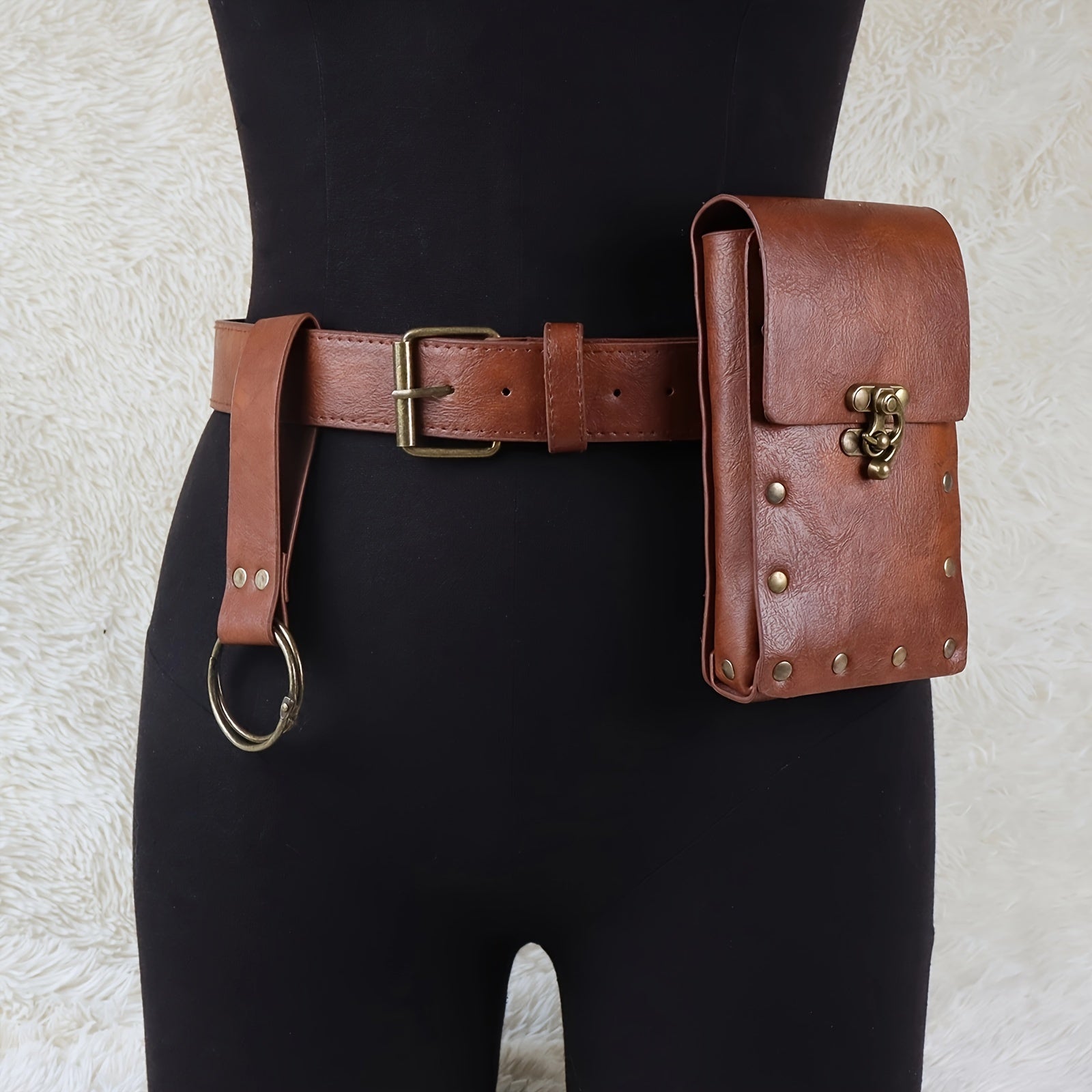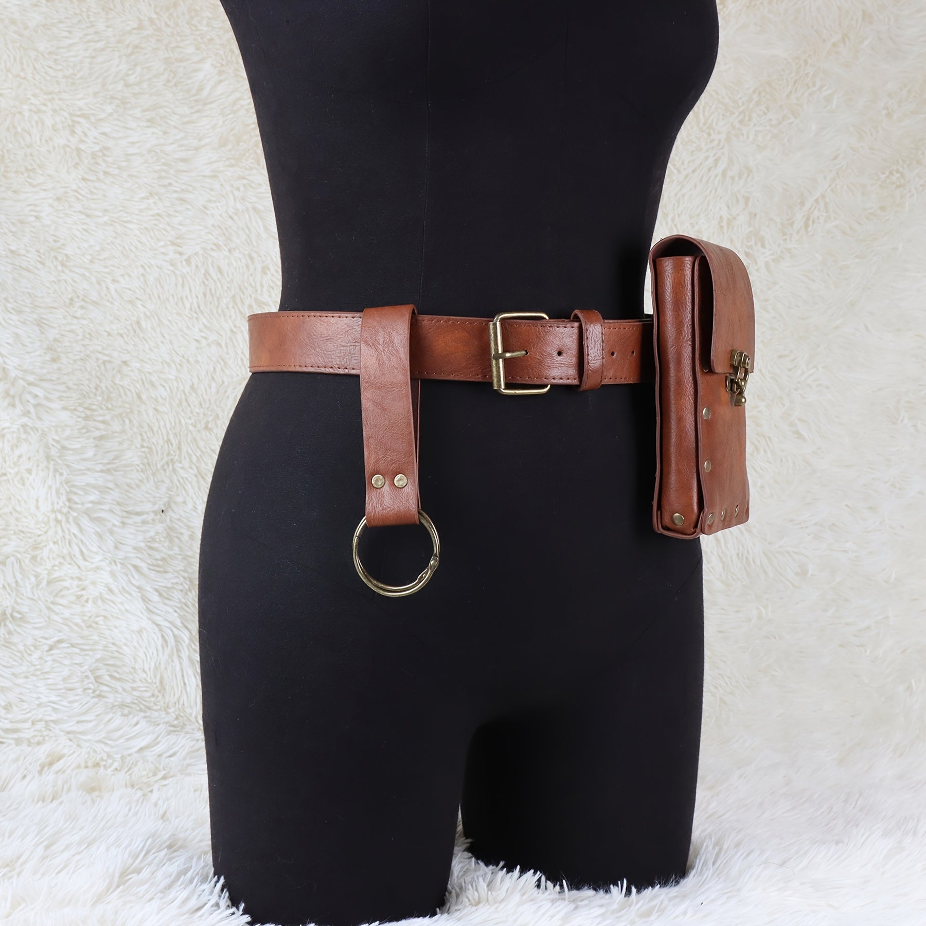 Complete your Renaissance or Viking costume with this 3-piece set including a belt, waist bag, and skirt in vintage style. Made of durable PU leather for an authentic look.