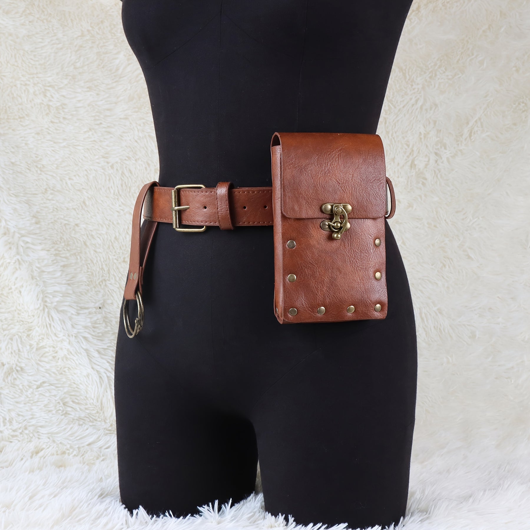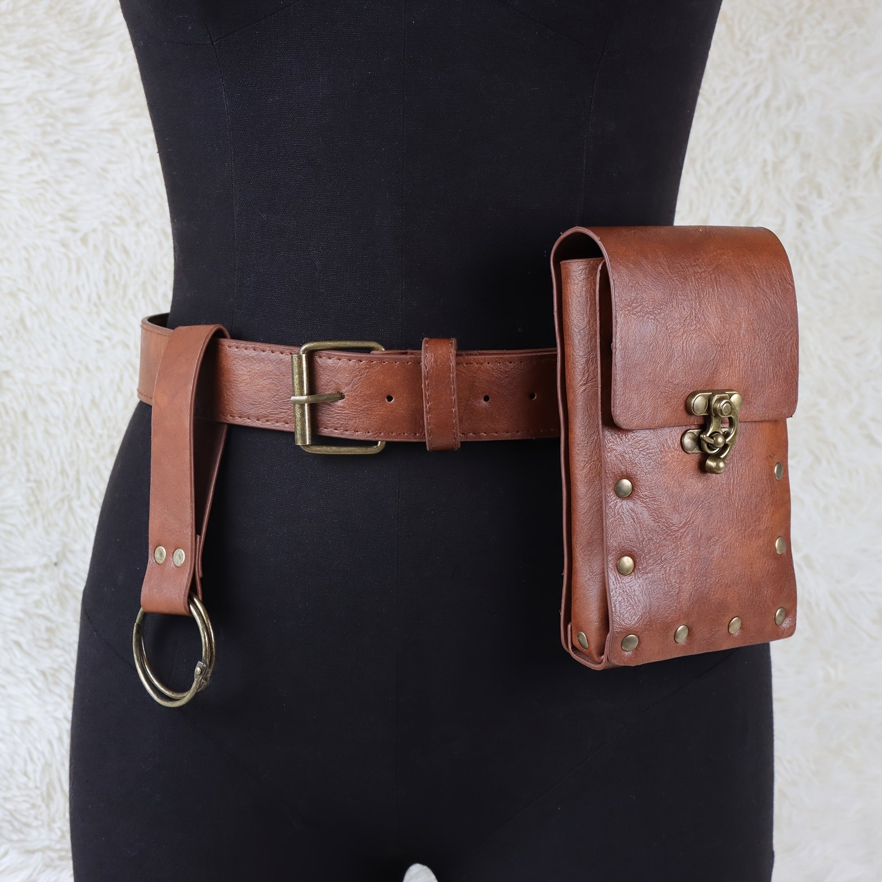 3pcs Medieval Brown PU Waist Bag Set for Viking C