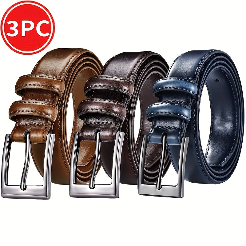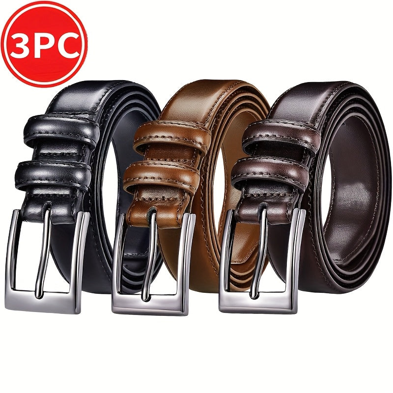 Upgrade your style with this 3-piece belt set suitable for daily wear, commuting, and business occasions. Perfect for pairing with suits or jeans, making it a versatile accessory for men. Great as a gift for family and friends.