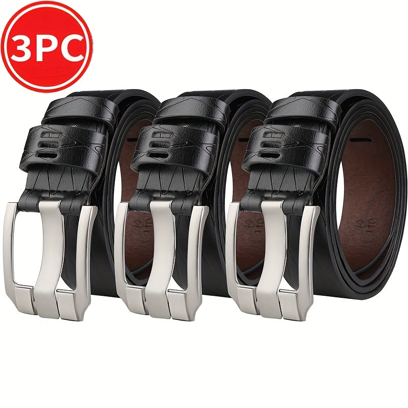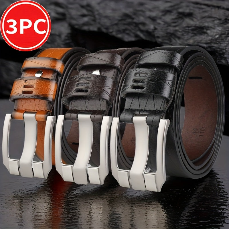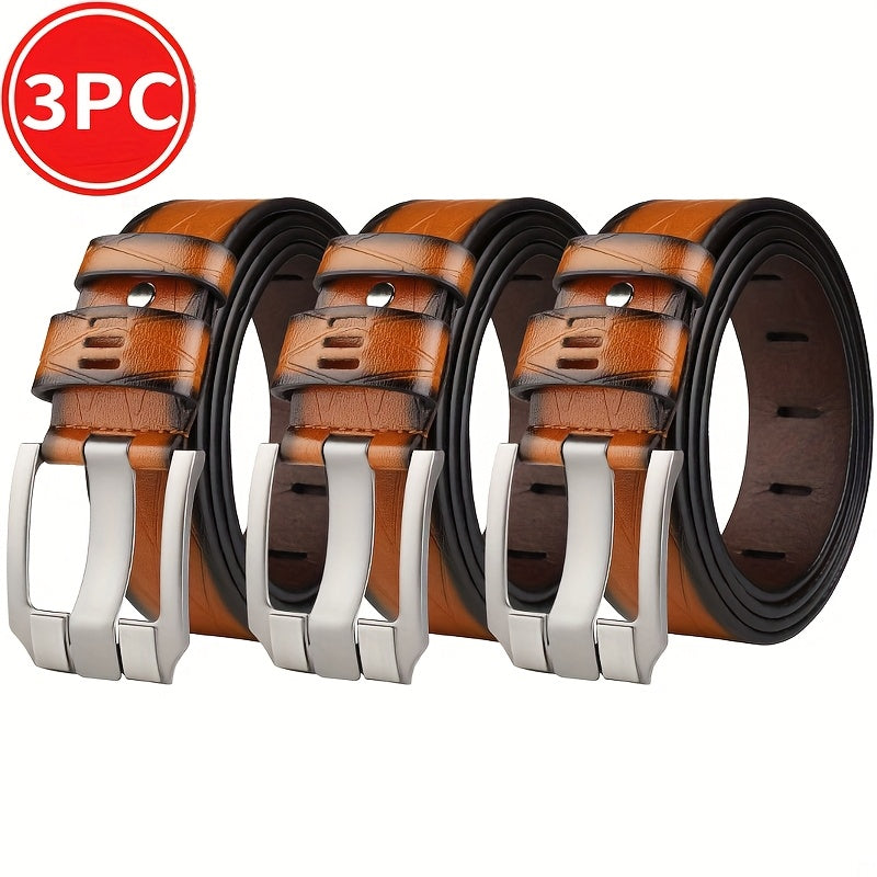 3pcs Men'S Brown Faux Leather Belts Alloy Buckle Casual Jeans Gifting