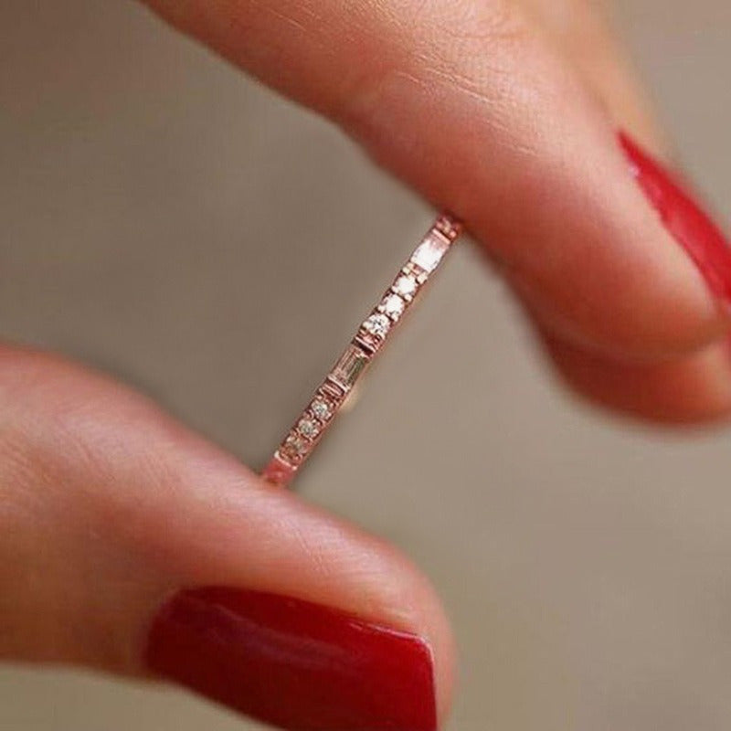 Elegant and stylish set of 3 rose gold plated stacking rings with synthetic zirconia inlay. Perfect for everyday wear or special occasions. Great gift for Christmas.