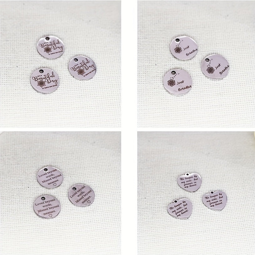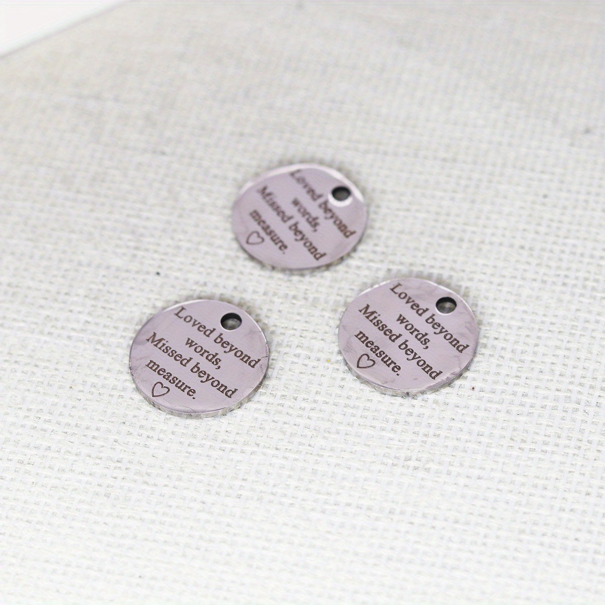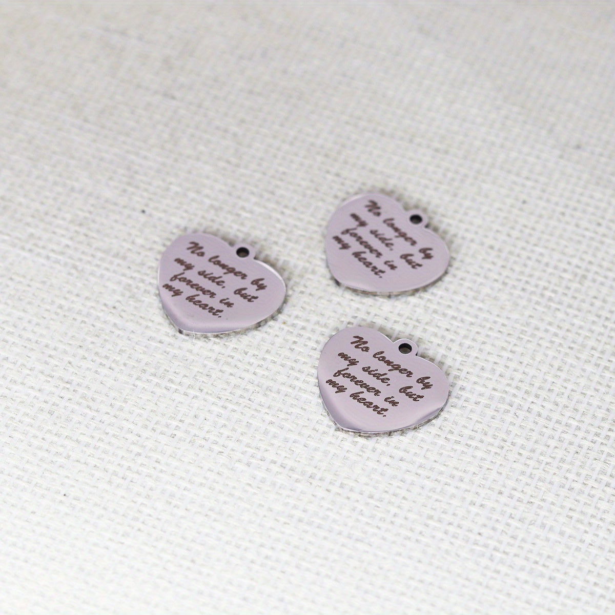 This set includes 3 silvery round heart shape tag pendants with red letters or graphics. Perfect for creating earrings, bracelets, necklaces, and other accessories.