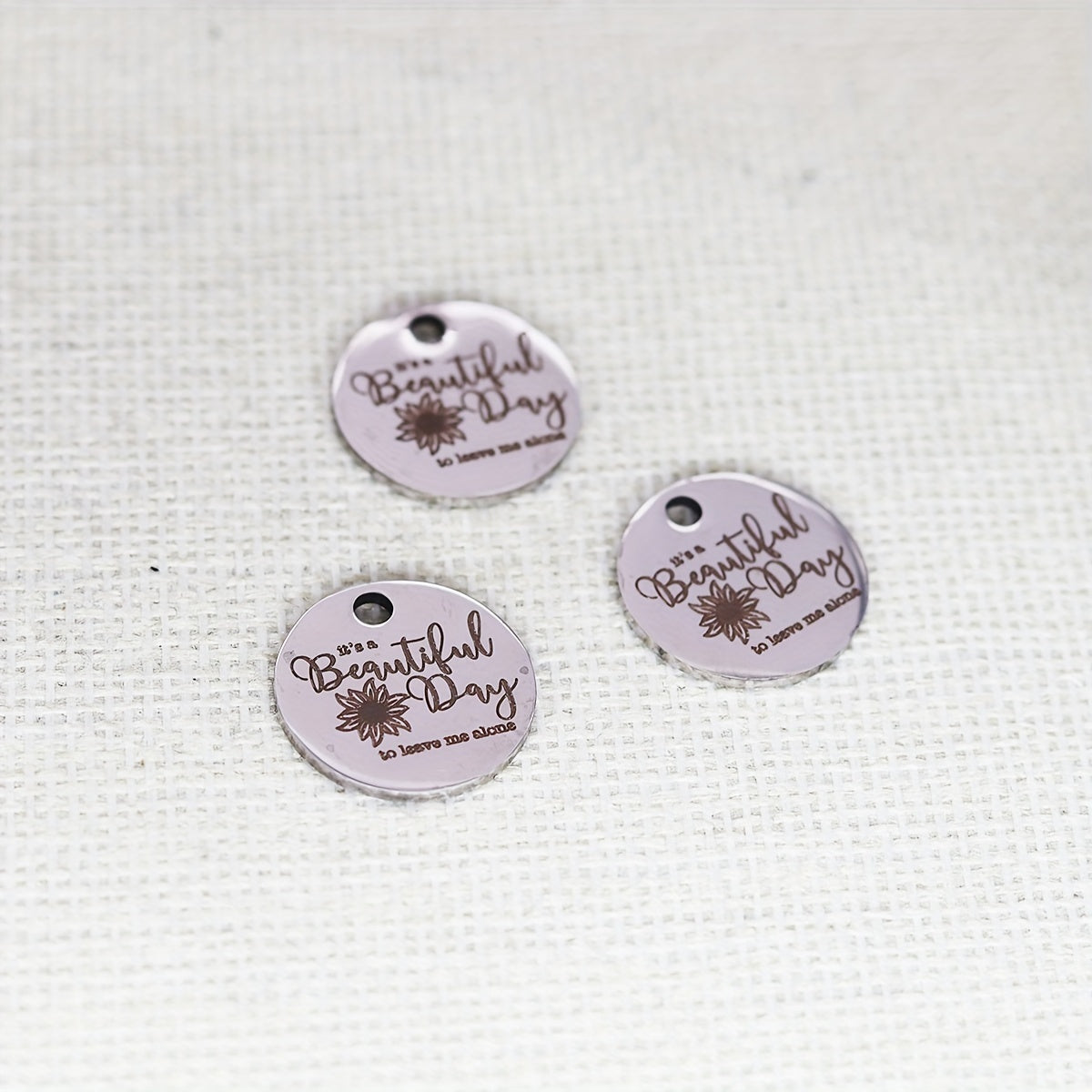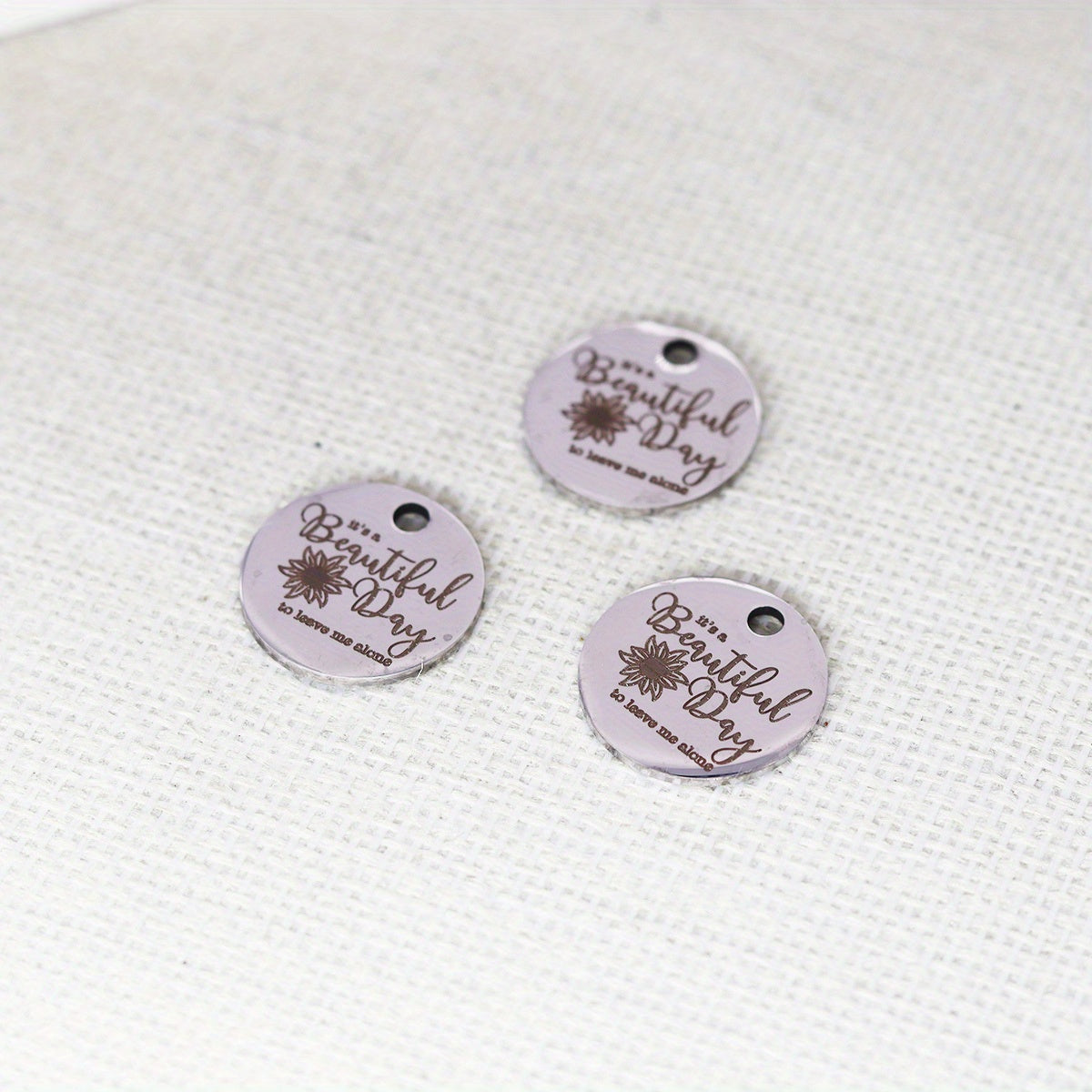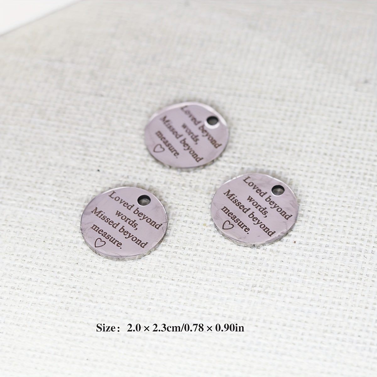 This set includes 3 silvery round heart shape tag pendants with red letters or graphics. Perfect for creating earrings, bracelets, necklaces, and other accessories.