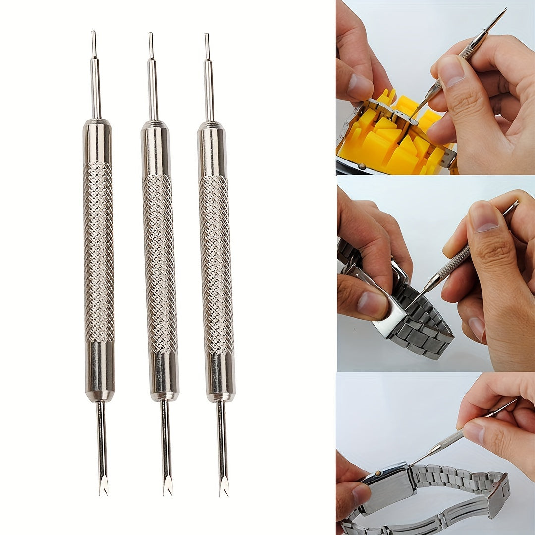 This tool set includes 3 stainless steel watch strap band spring bar pin link removers, perfect for watch repair and adjustment.