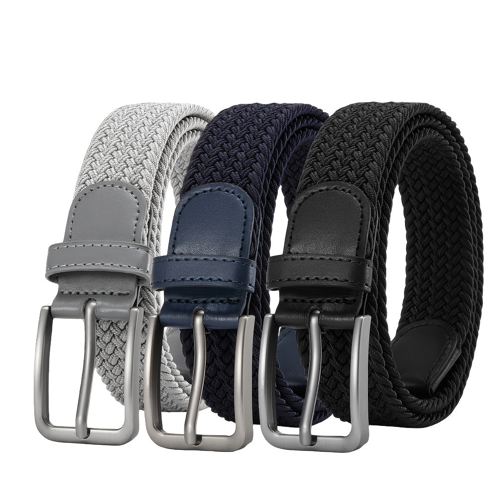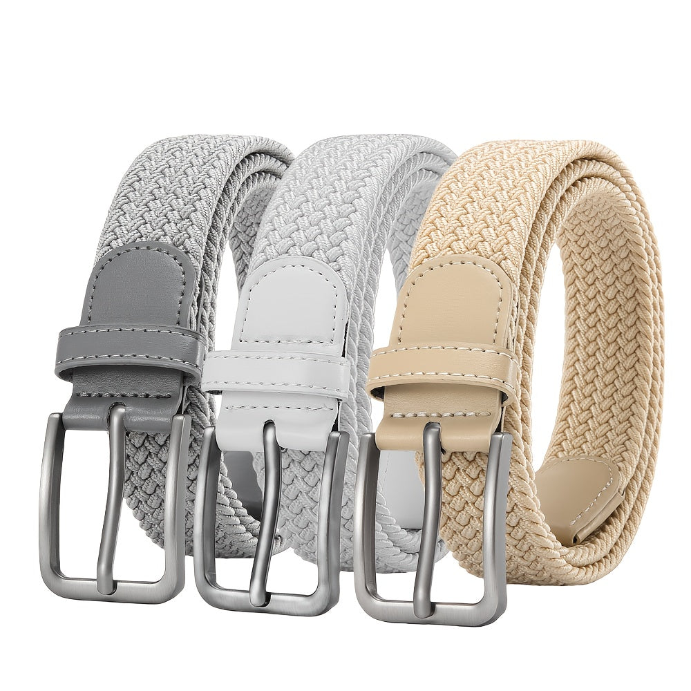 3pcs Stretch Braided Golf Belts Gray Beige Casual Fabric Belts 1 3 8 Wide