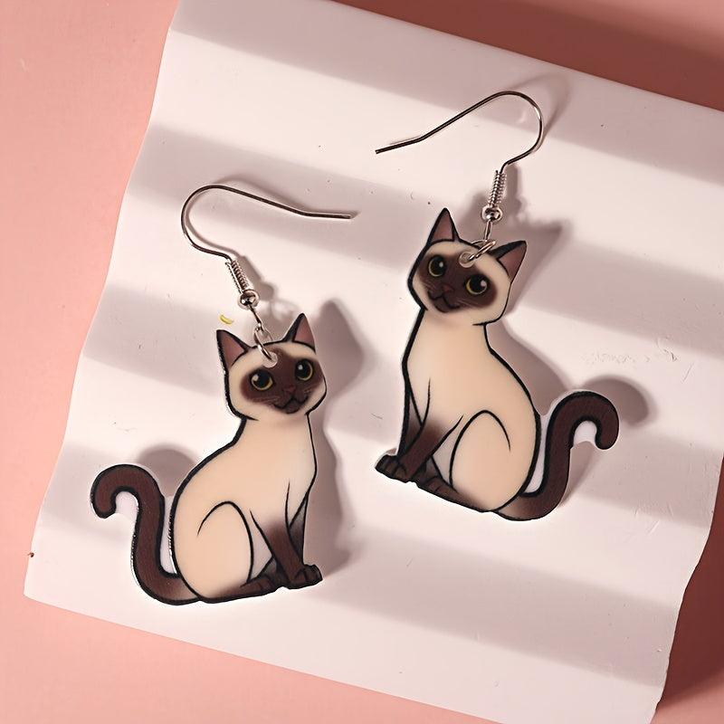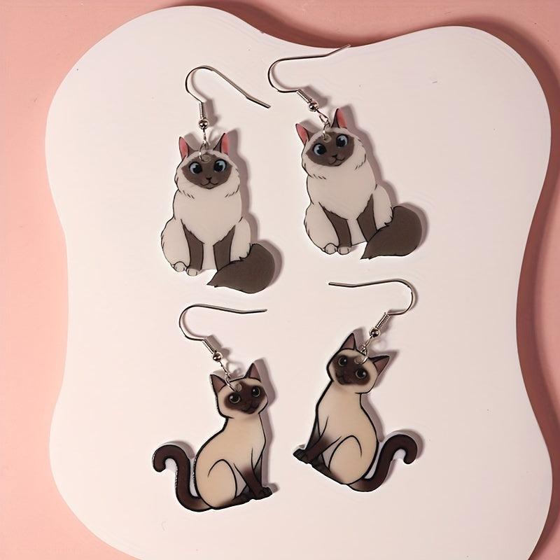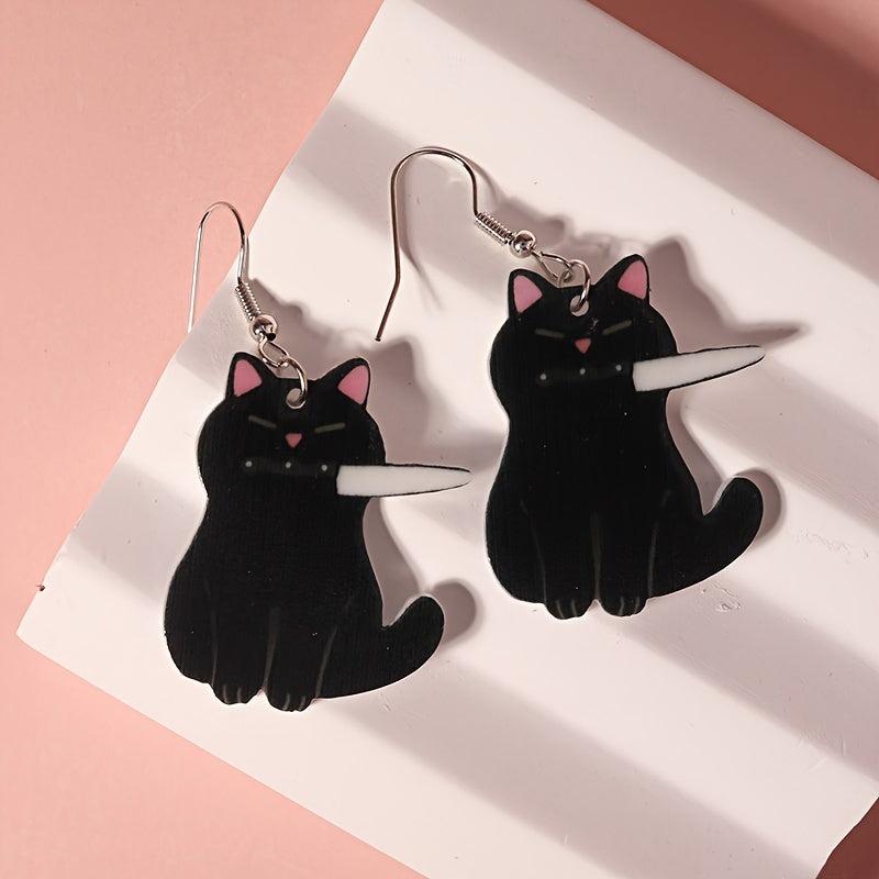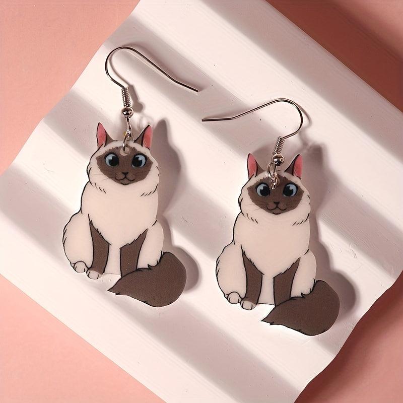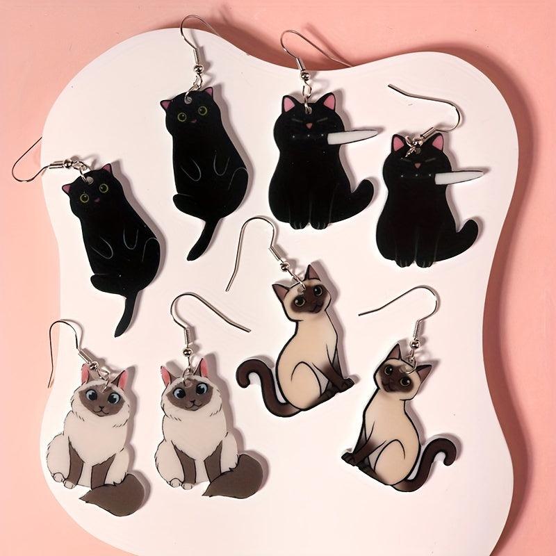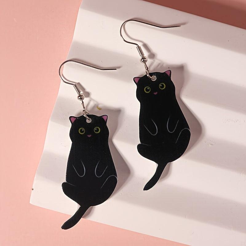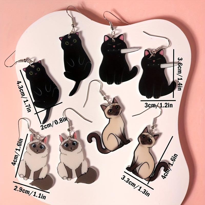 These adorable cat dangle earrings are perfect for cat lovers! Made of acrylic in a cartoon style, they make a cute gift for females.