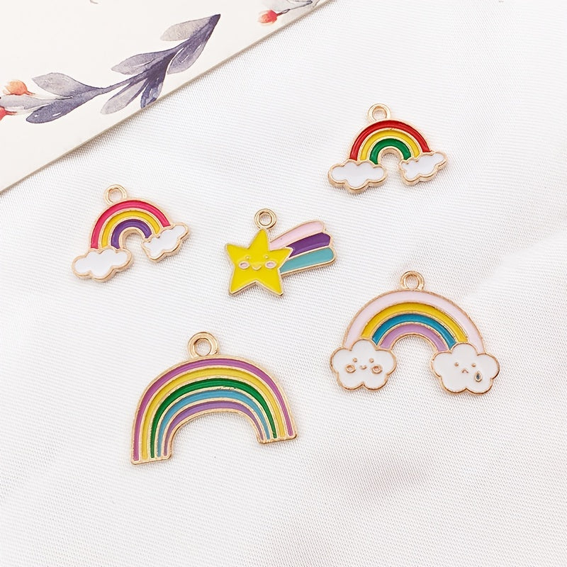 Create stunning jewelry with these golden plated alloy rainbow charms. Perfect for kids' DIY crafts kits.