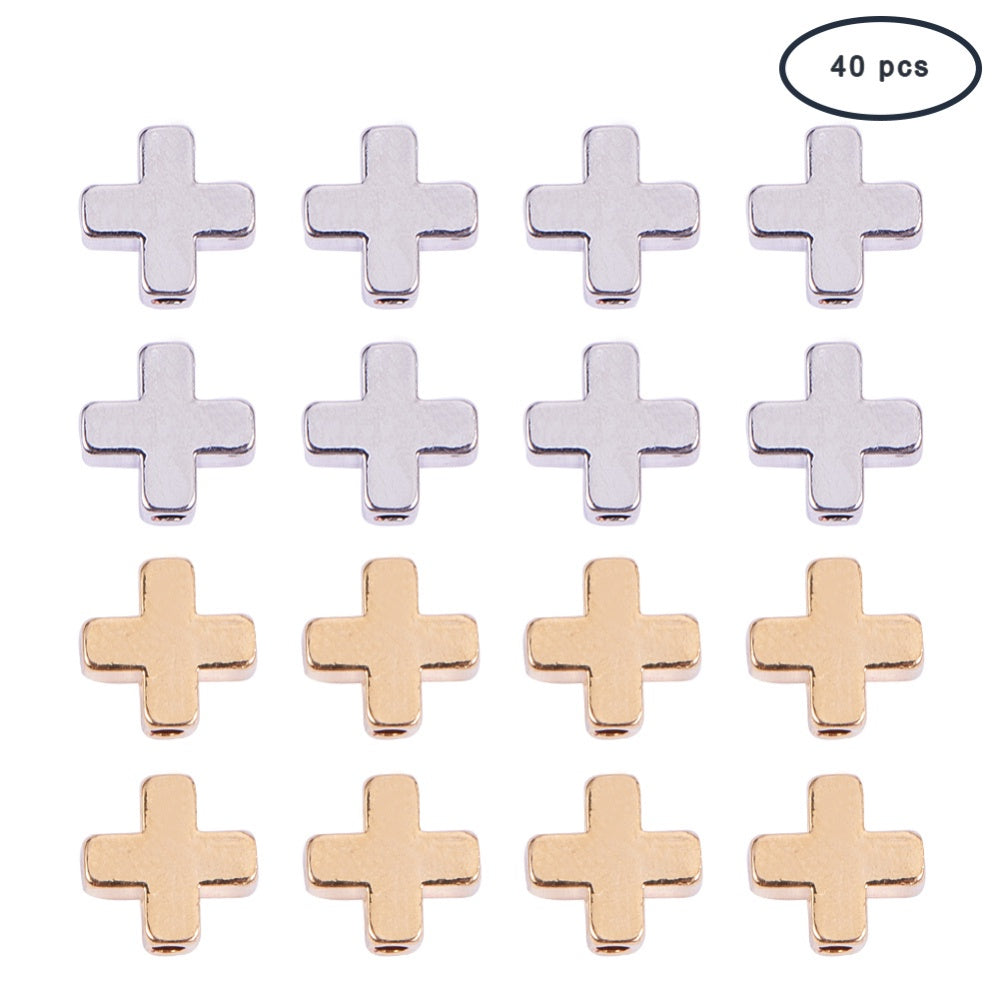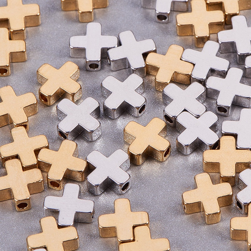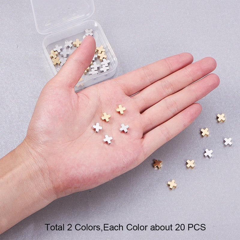 Enhance your DIY projects with this set of 40 platinum and golden cross-shaped beads with a hole size of 8-9x8-9x2.5mm.