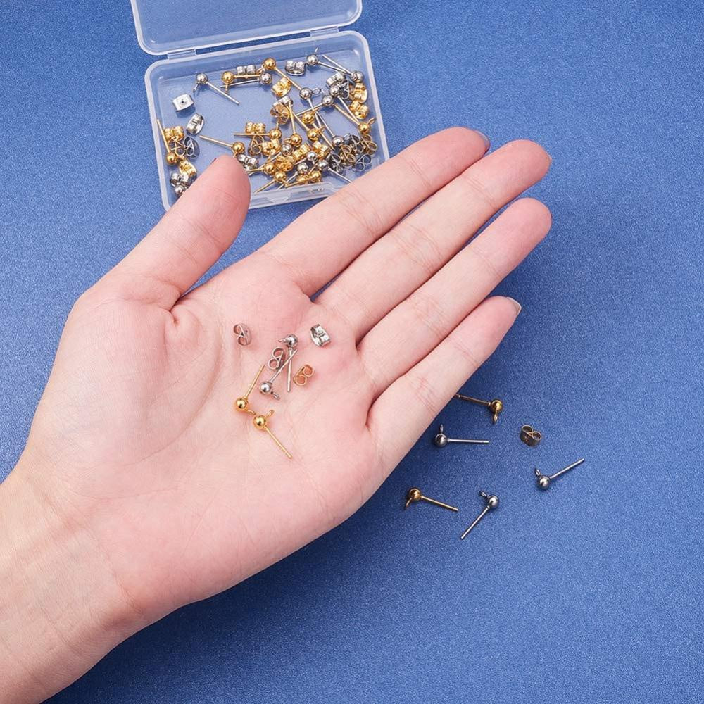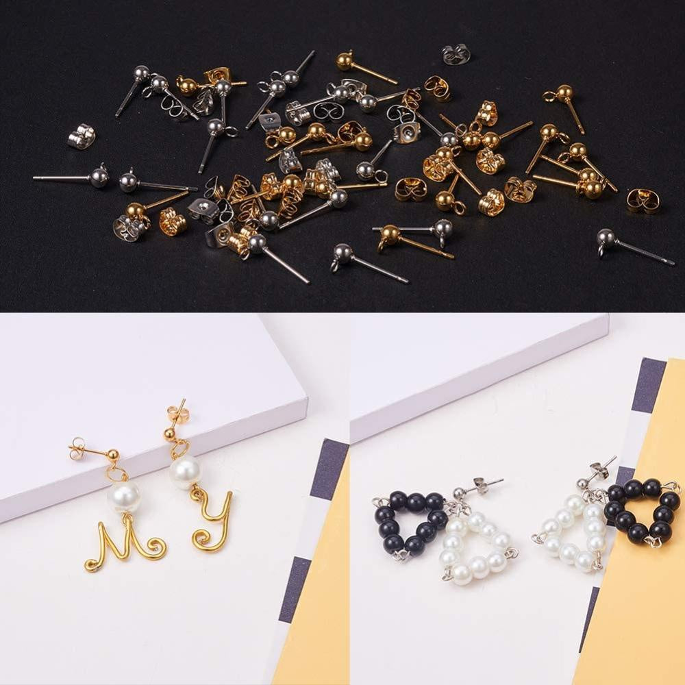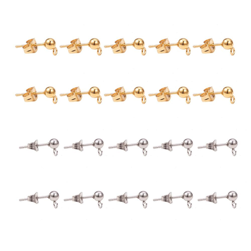 This set of 40pcs stainless steel ear stud components is perfect for making jewelry. The components come in golden and silvery colors, adding a touch of elegance to your creations.