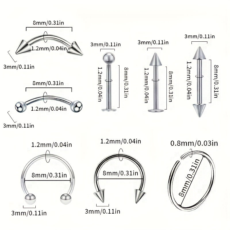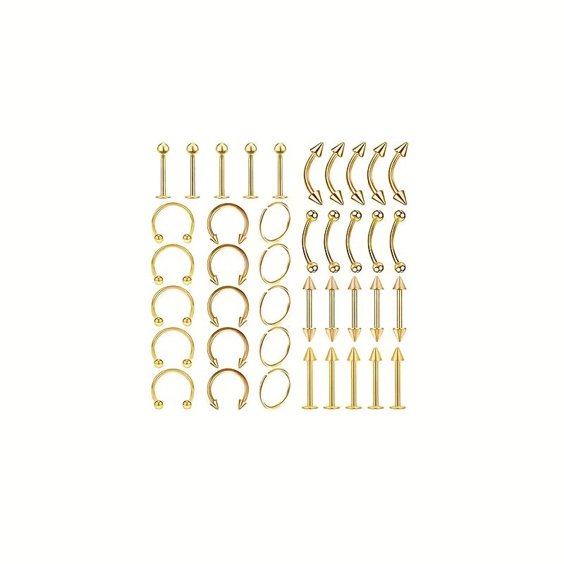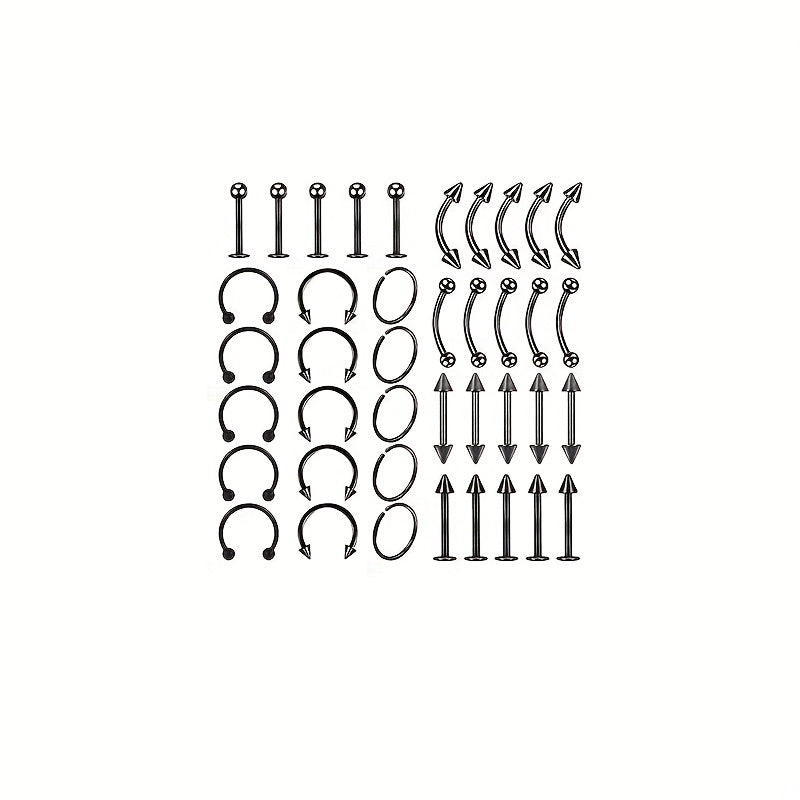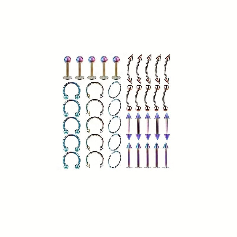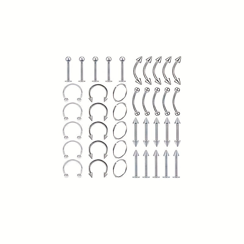 This set includes 40 pieces of stainless steel body piercing jewelry, suitable for nose, eyebrow, lip, and more. Each horseshoe ring is durable and stylish, perfect for your piercing needs.