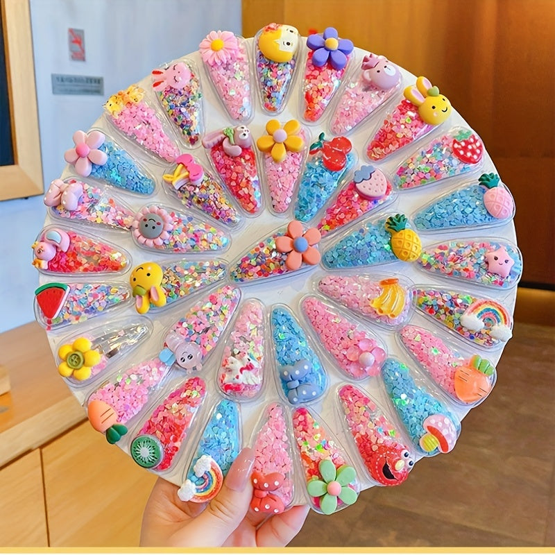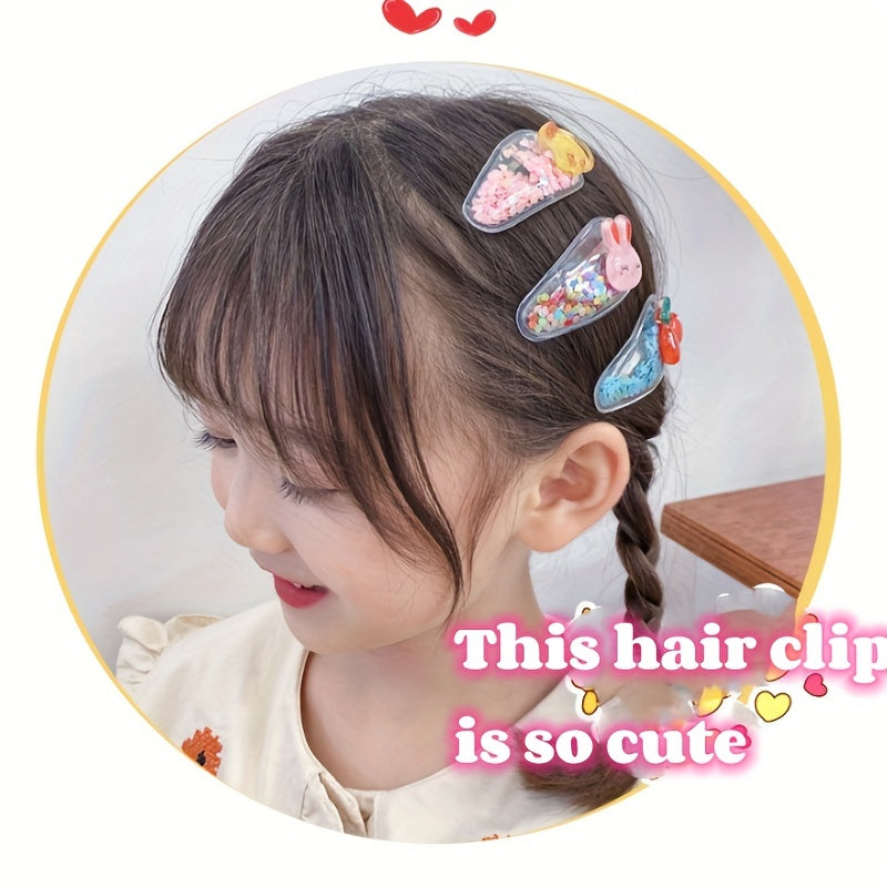 These cute hair clips feature a transparent design with sparkly fruit shapes. Perfect for adding a touch of sweetness to any hairstyle. Great gift for children.