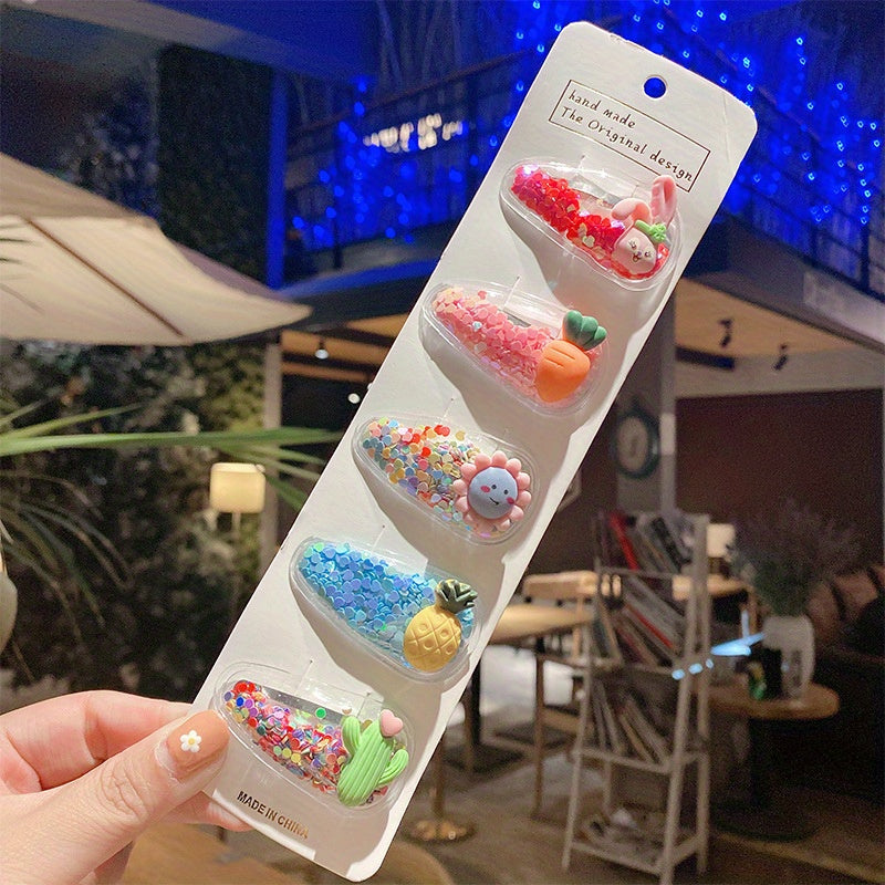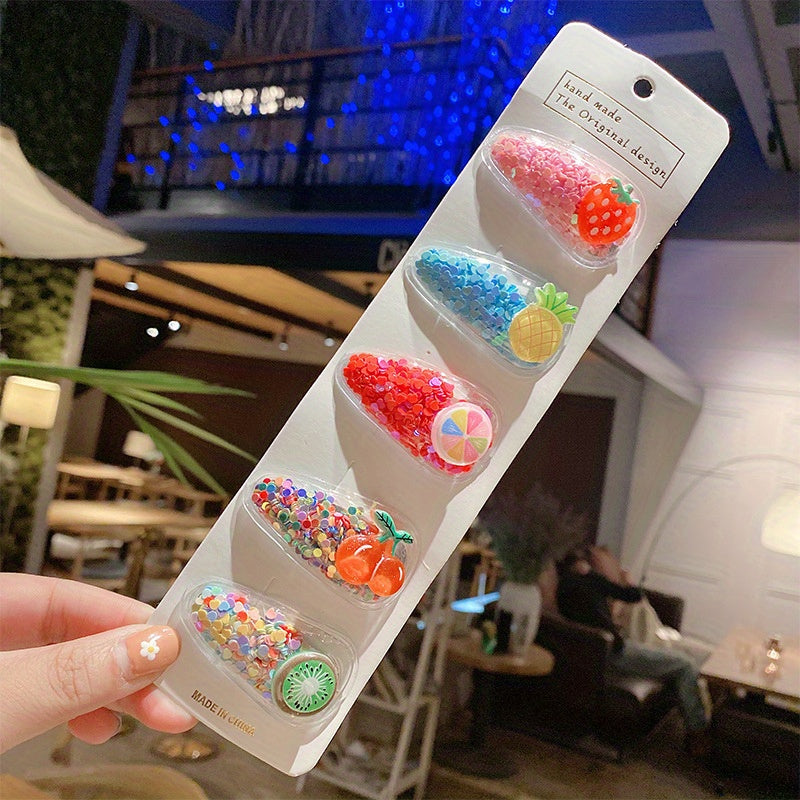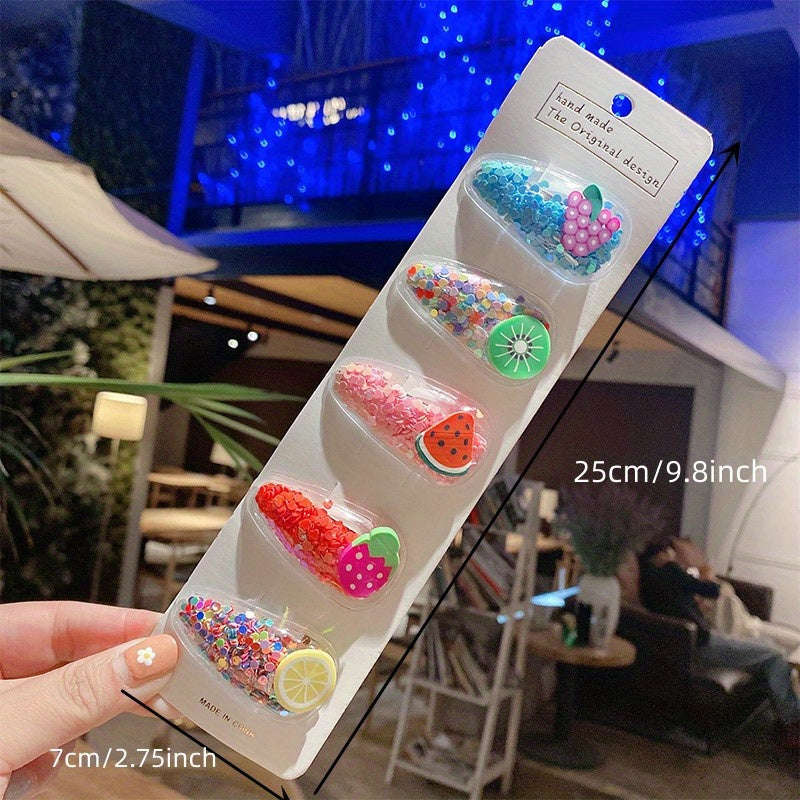 5 Pcs Sparkle Fruit Snap Hair Clips for Girls - Quicksand Bling Sequin Hairpins