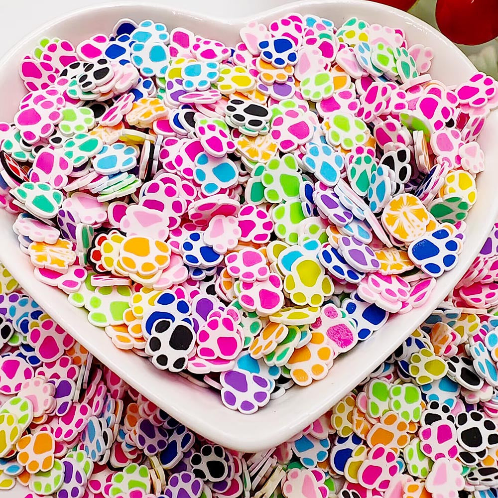 500PCS Cartoon Footprint Soft Ceramic Chip Animal Bear Cat Dog Claw Patch DIY