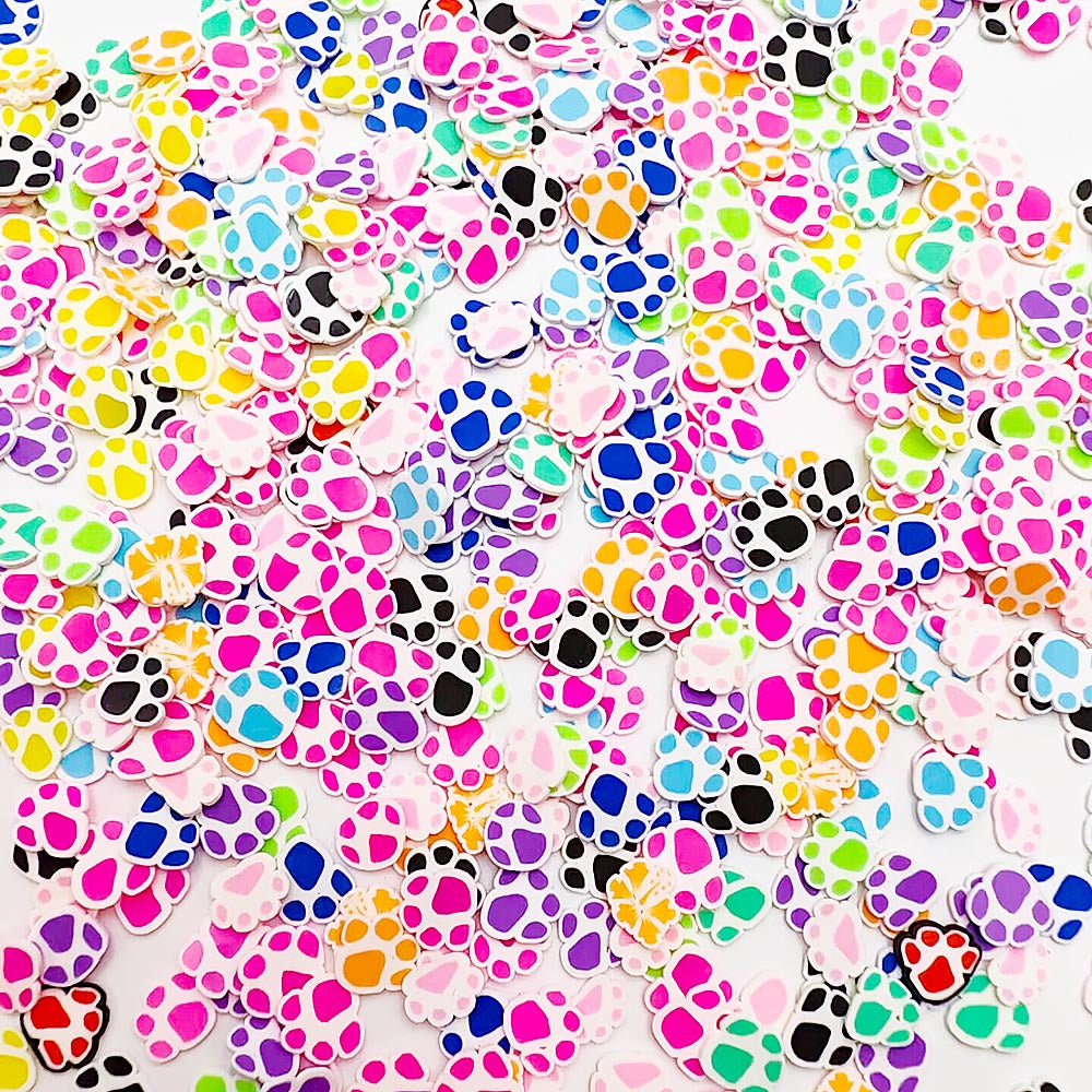 This set includes 500PCS of mixed cartoon footprint pattern soft ceramic chips ideal for DIY projects such as embellishing hair clips, phone cases, photo frames, and more.