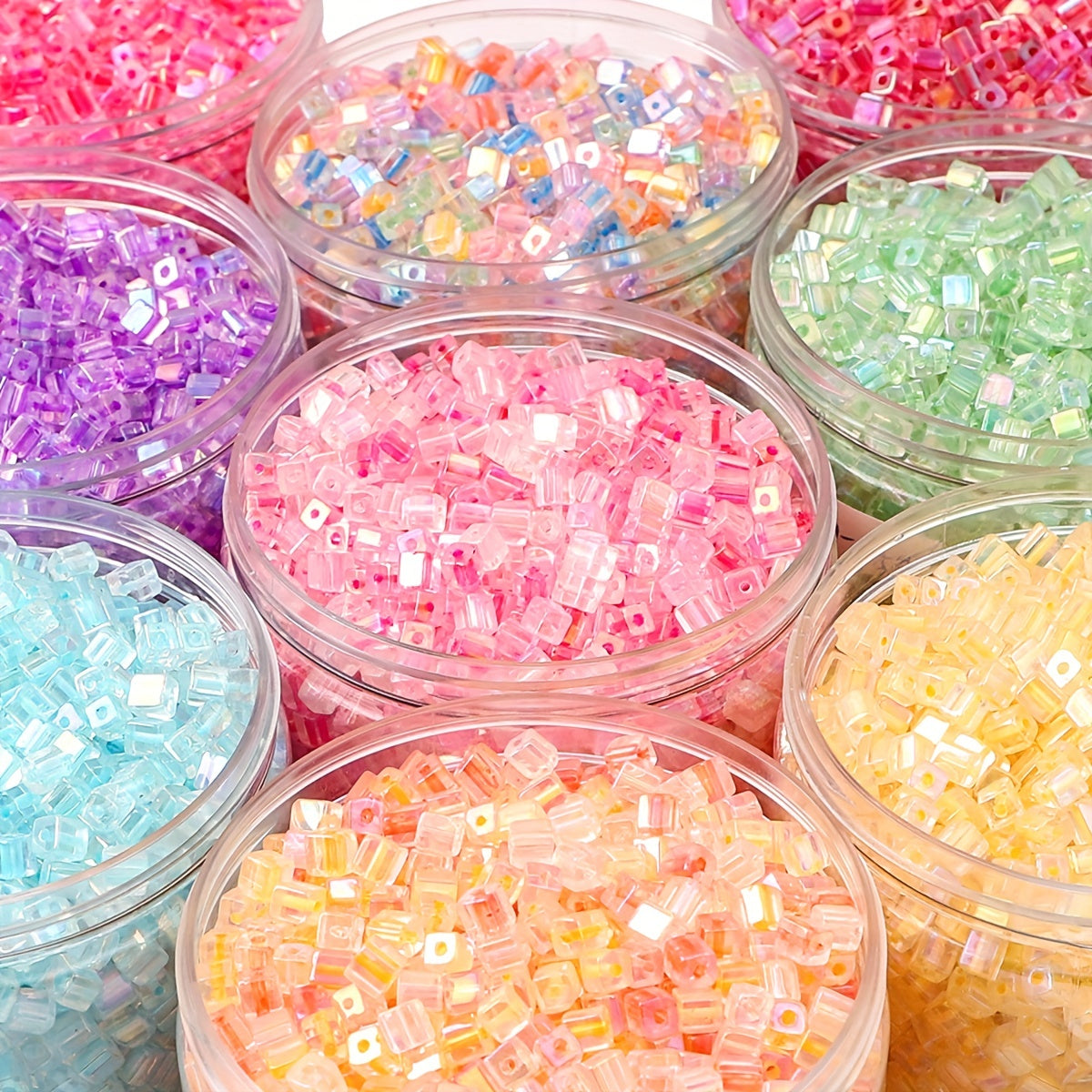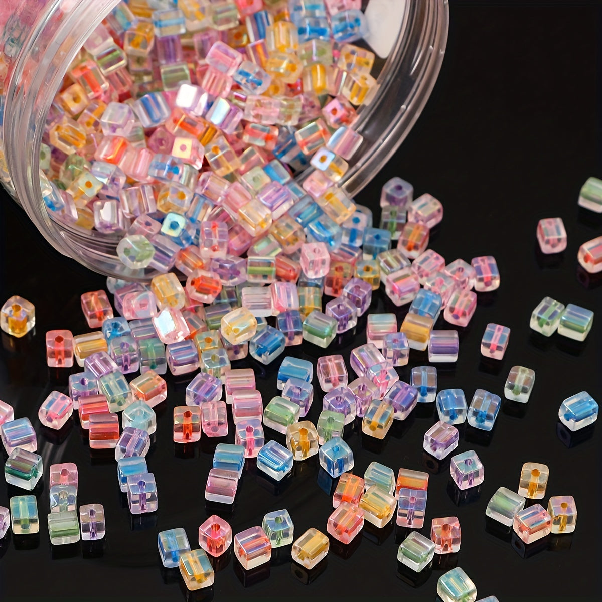 Add a pop of color to your DIY earrings, bracelets, and necklaces with this set of 50 transparent square glass beads. Create unique and vibrant accessories with these beads.