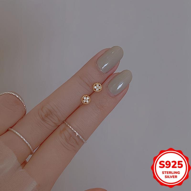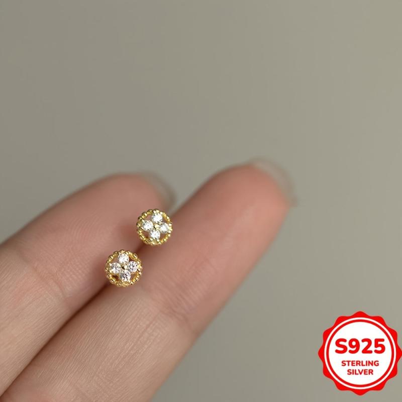5g S925 Silver Four-leaf Flower Earrings Zircon Inlay Tiny Flower Earrings