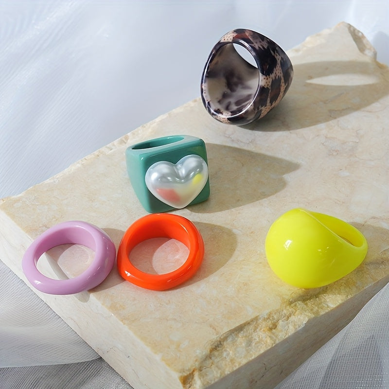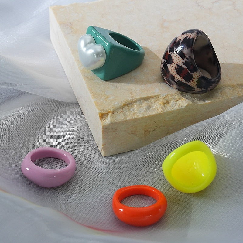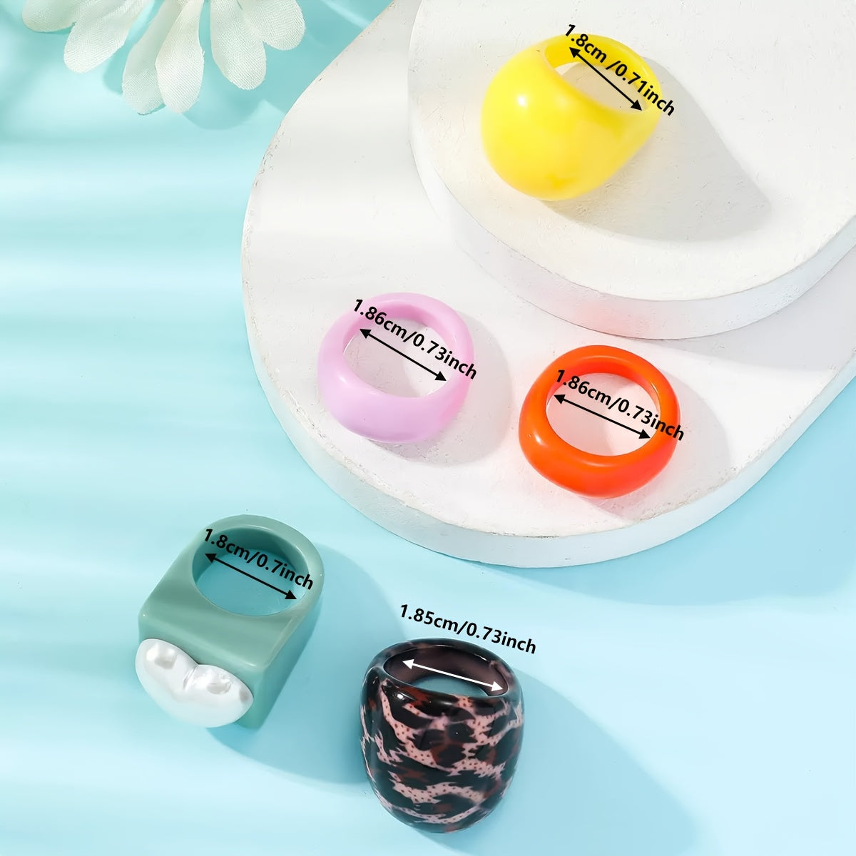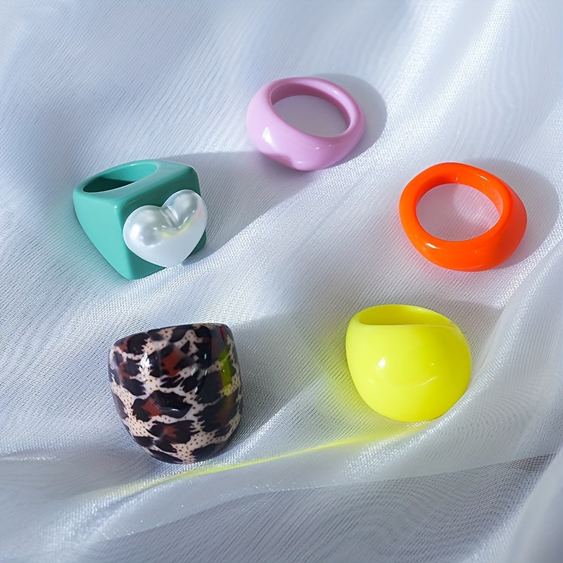 Add a pop of color to your look with these vibrant pastel resin rings. Perfect for casual attire, party celebrations, beach accessories, or everyday wear. These playful rings are durable and stylish.