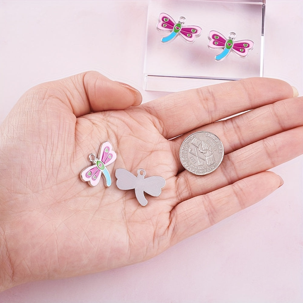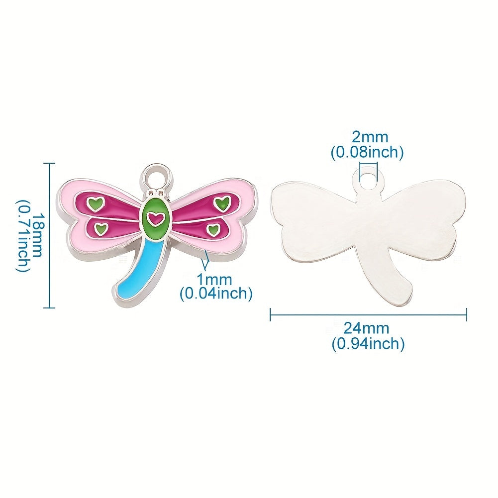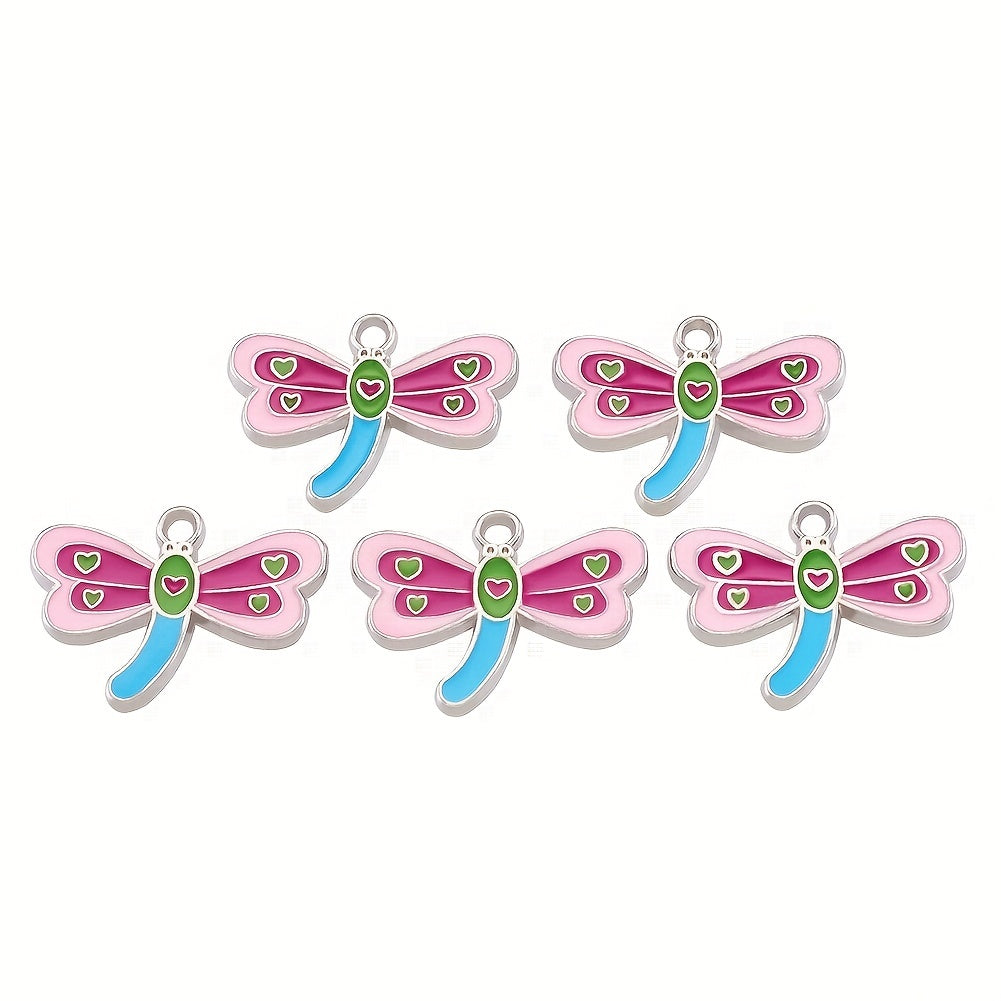 Add a touch of charm to your jewelry pieces with these lovely pink alloy enamel dragonfly pendants. Perfect for making necklaces, bracelets, and earrings.