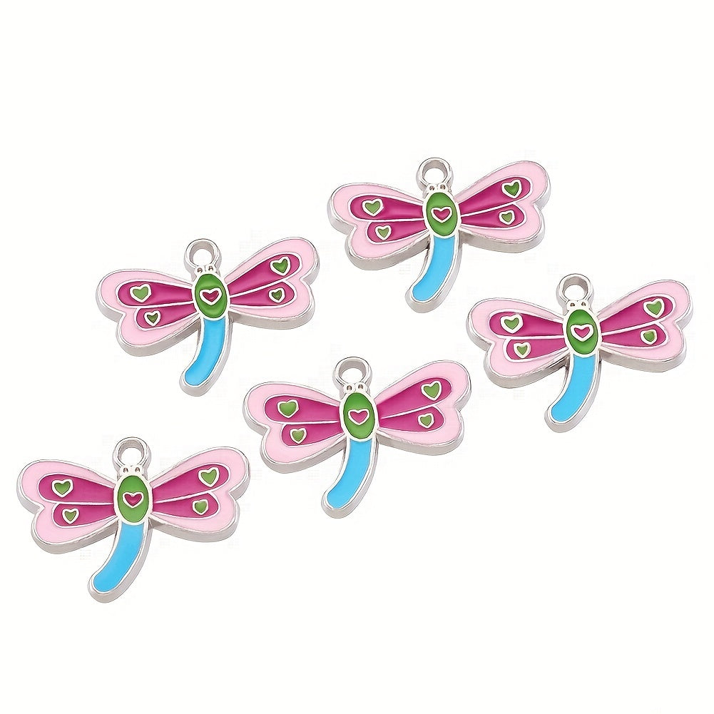 5Pcs Pink Dragonfly Pendants DIY Jewelry Accessories