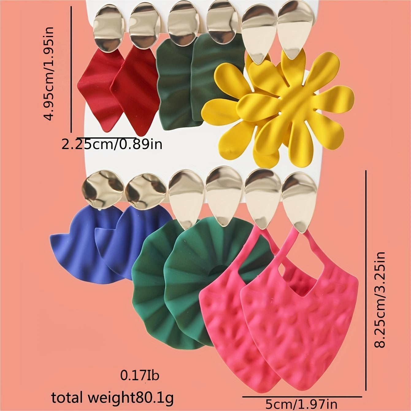 This set includes 6 pairs of colorful dangle earrings designed in vocation style with iron and 18K plated material. Delicate jewelry gift for women.