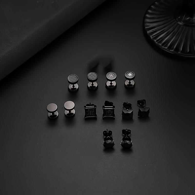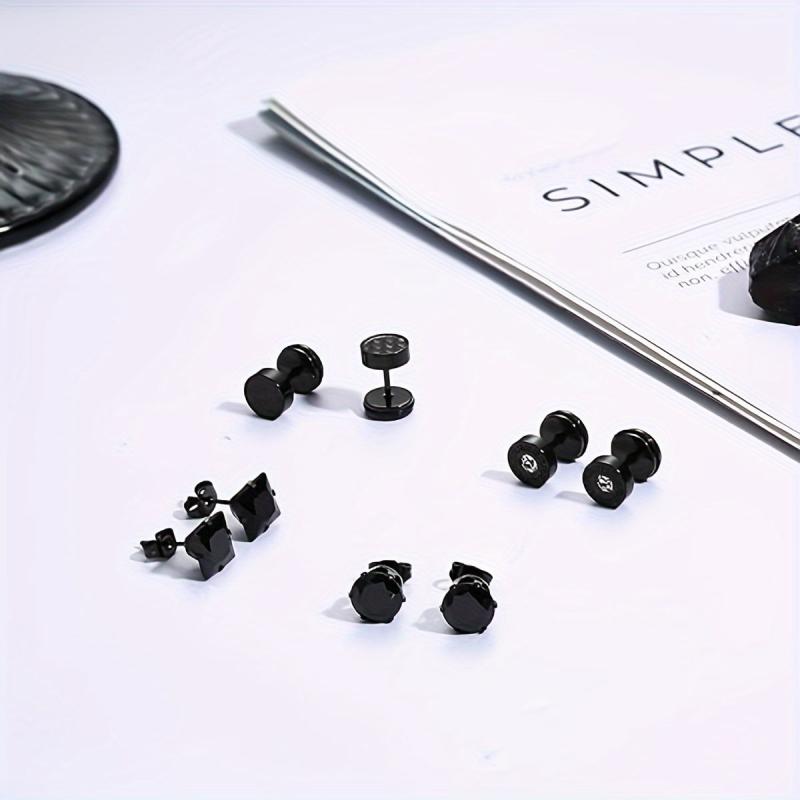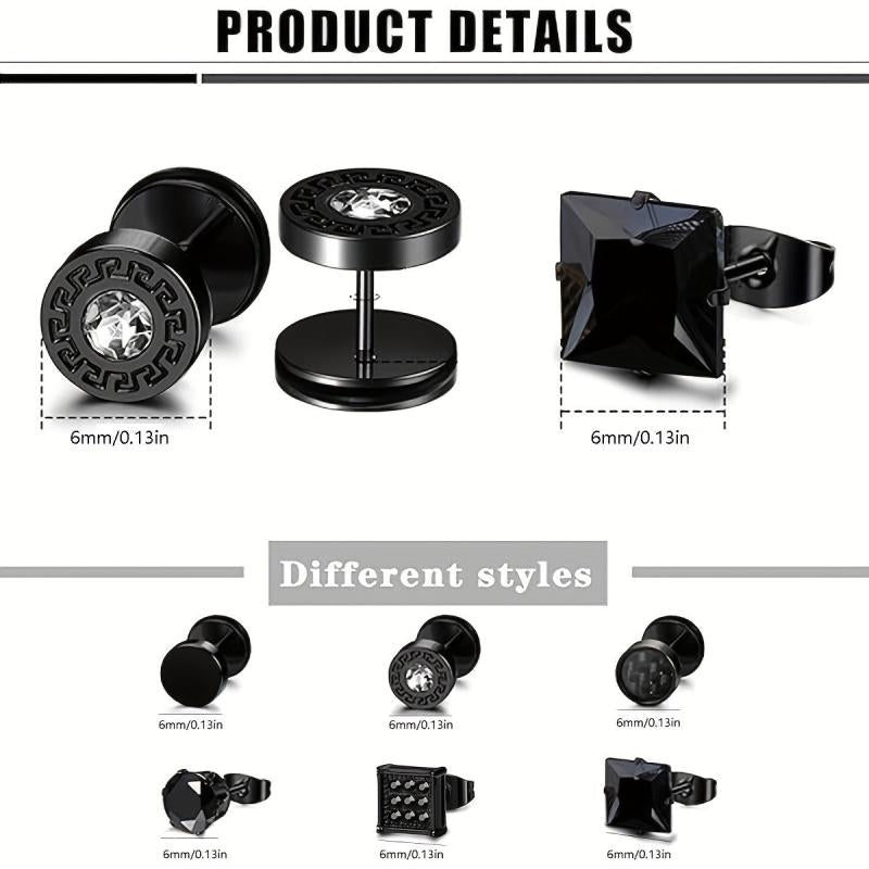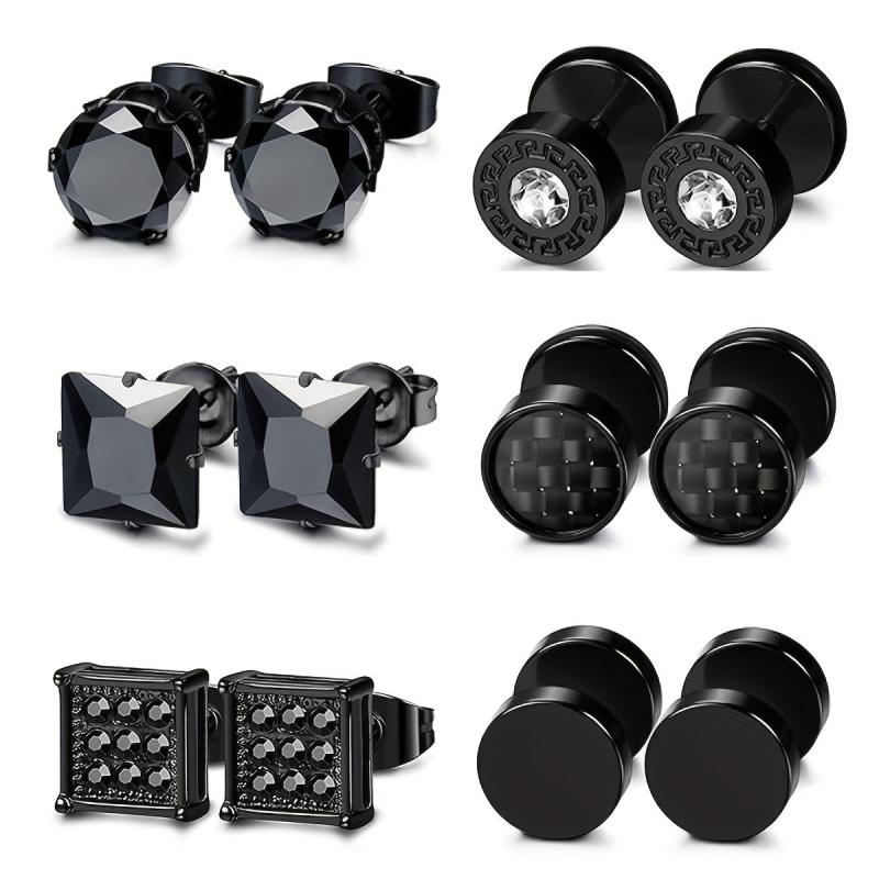 Elegant and stylish set of 6 pairs of cubic zirconia stud earrings made of stainless steel. Perfect for men and women. Ideal for everyday wear or special occasions.