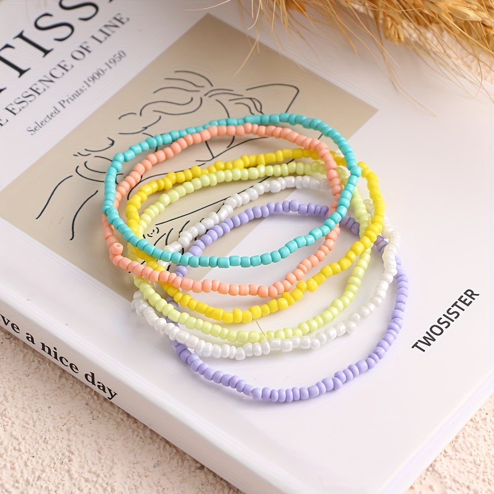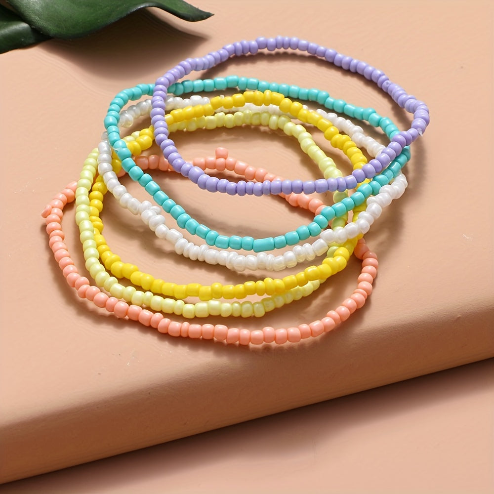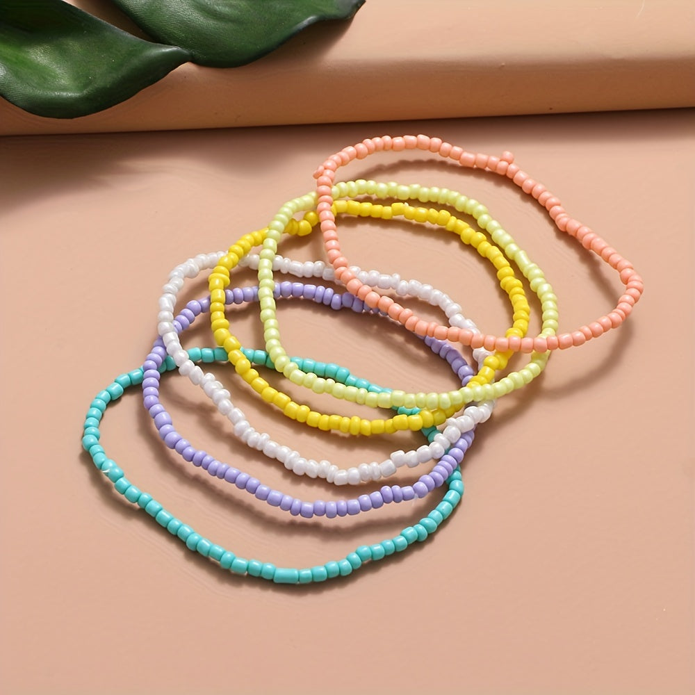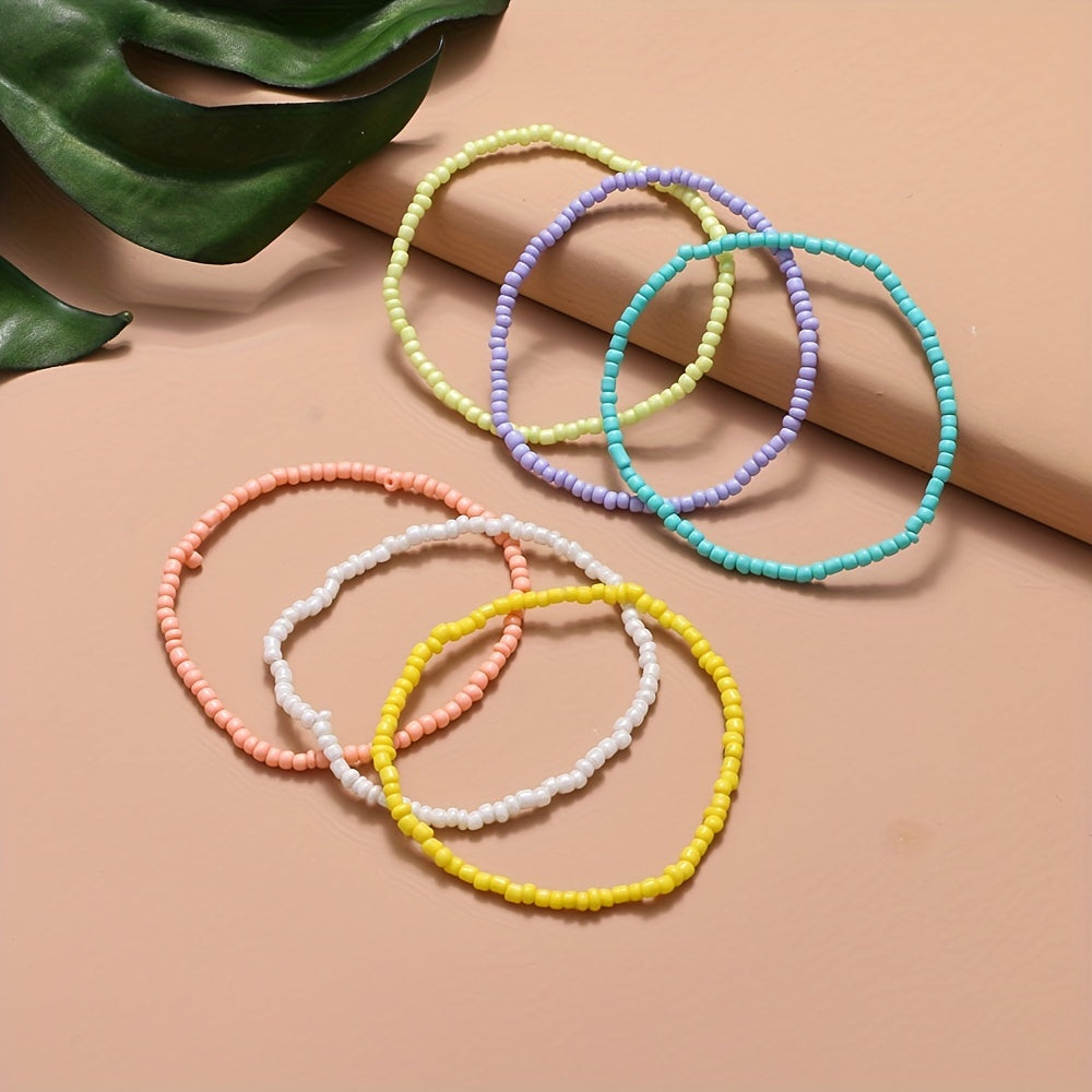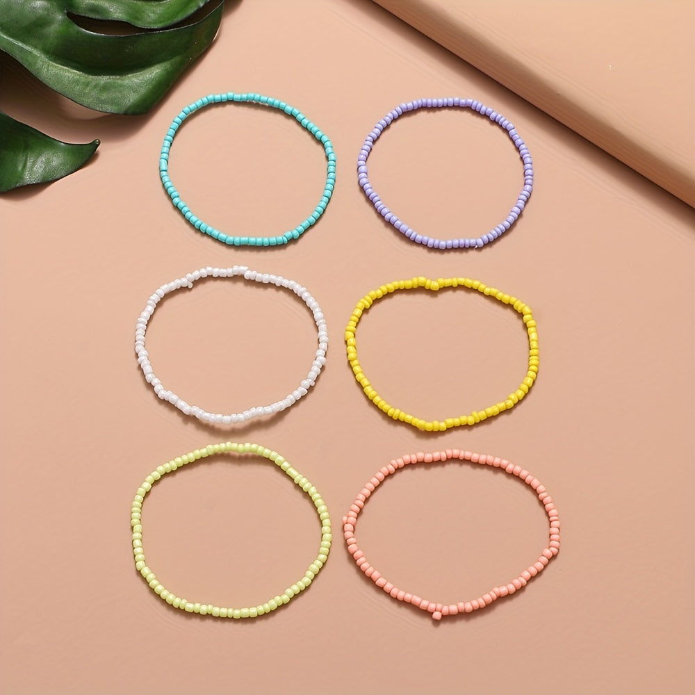 6 Pcs Colorful Beaded Anklet Set Boho Style Summer Beach Anklet