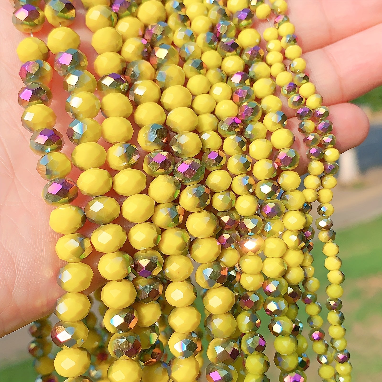 Add a pop of color to your jewelry creations with these loose crystal beads. Perfect for DIY bracelets and other accessories, these beads come in yellow, purple, rose red, and more.