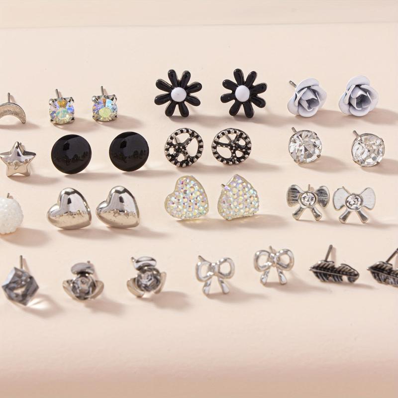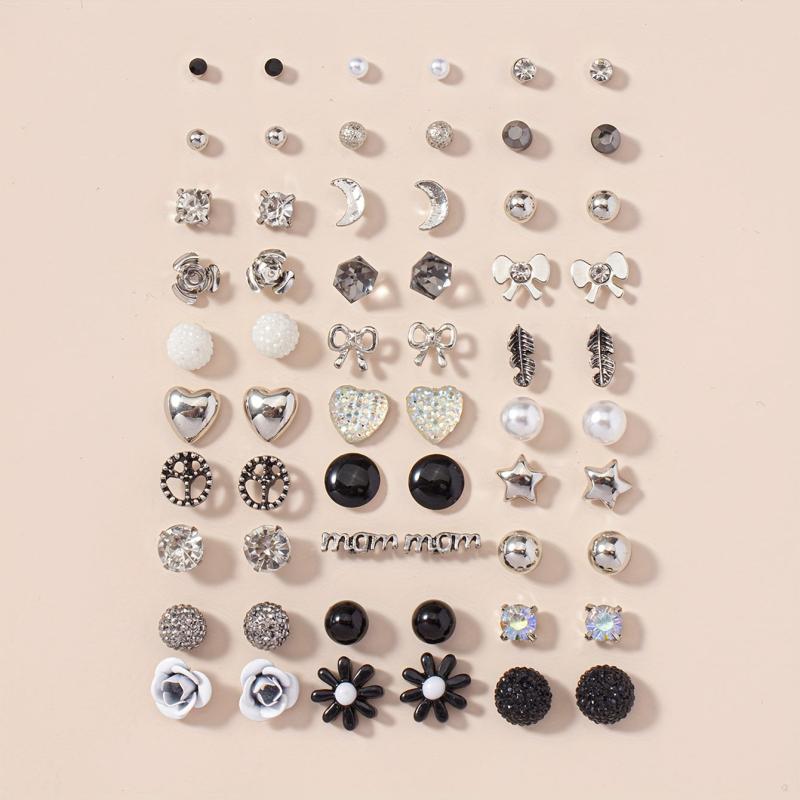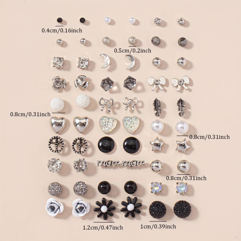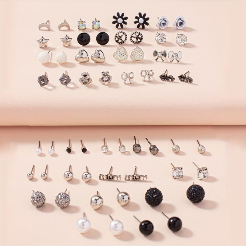 Elevate your style with this stunning set of 60 metal, resin, and faux heart-shaped moon bow leaf flower earrings. Perfect gift for the holidays or any special occasion. Add these unique jewelry accessories to your collection!