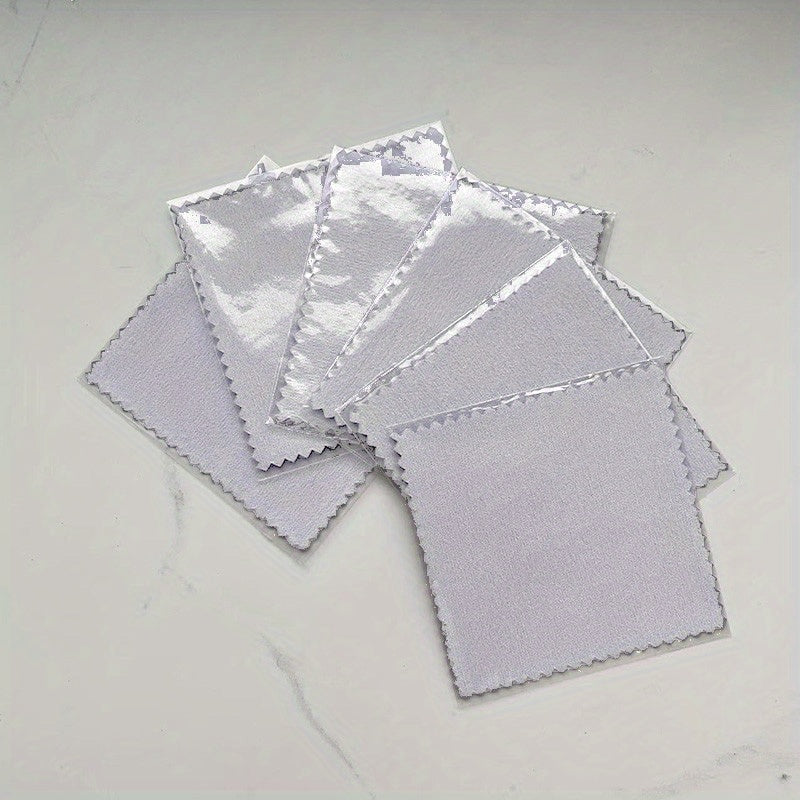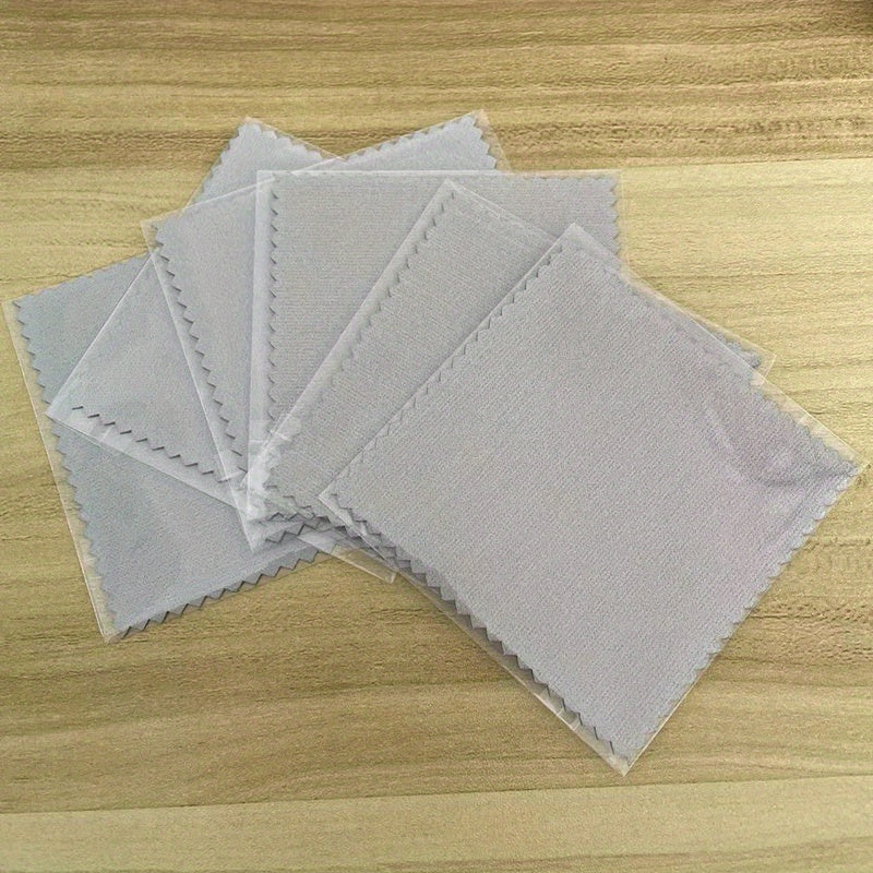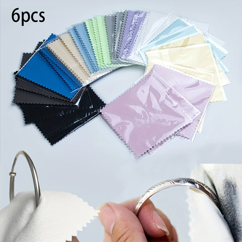 Get this set of 6 individually packaged velvet silver wiping cloths for jewelry maintenance. Each cloth is double-sided and portable, perfect for cleaning, wiping, and polishing your jewelry.