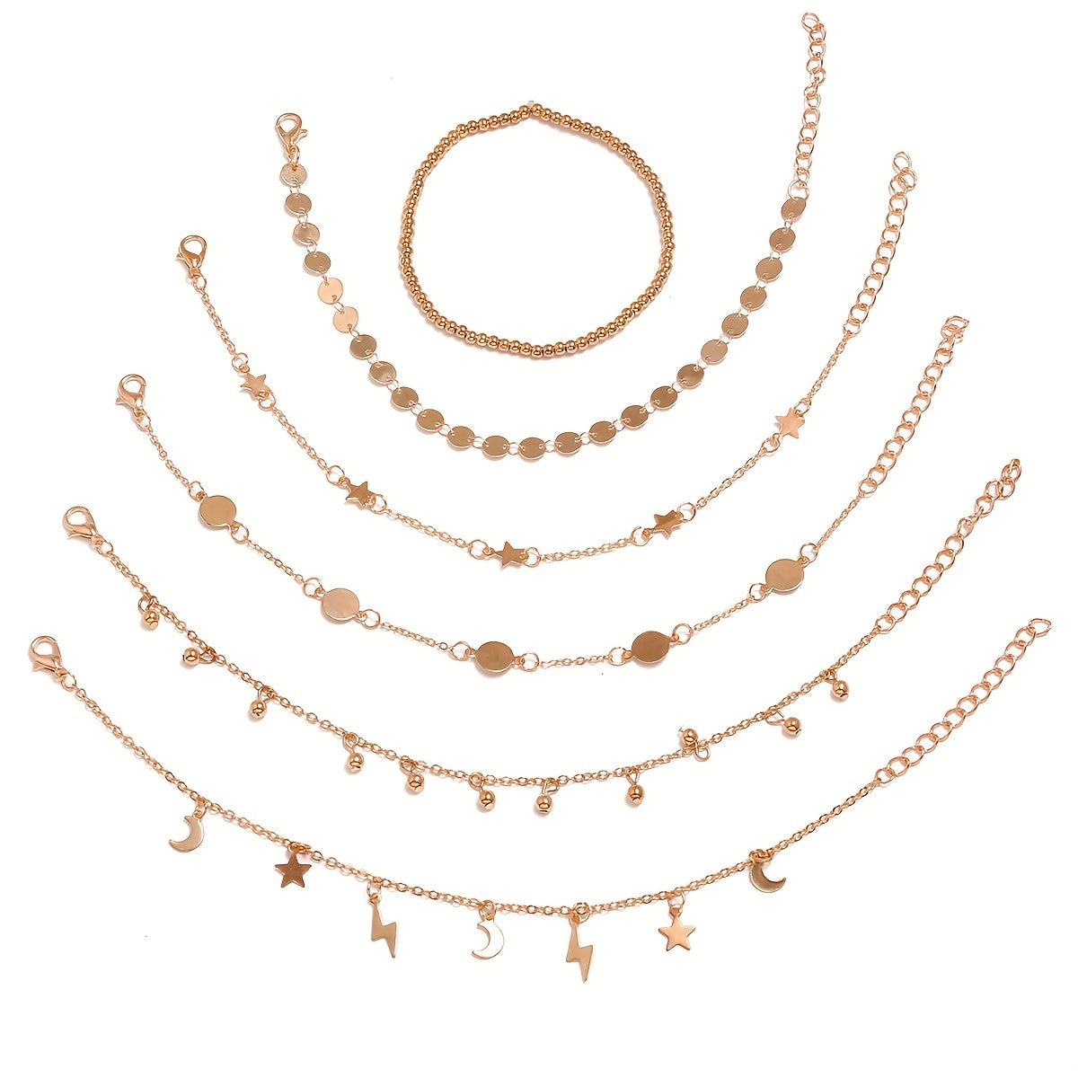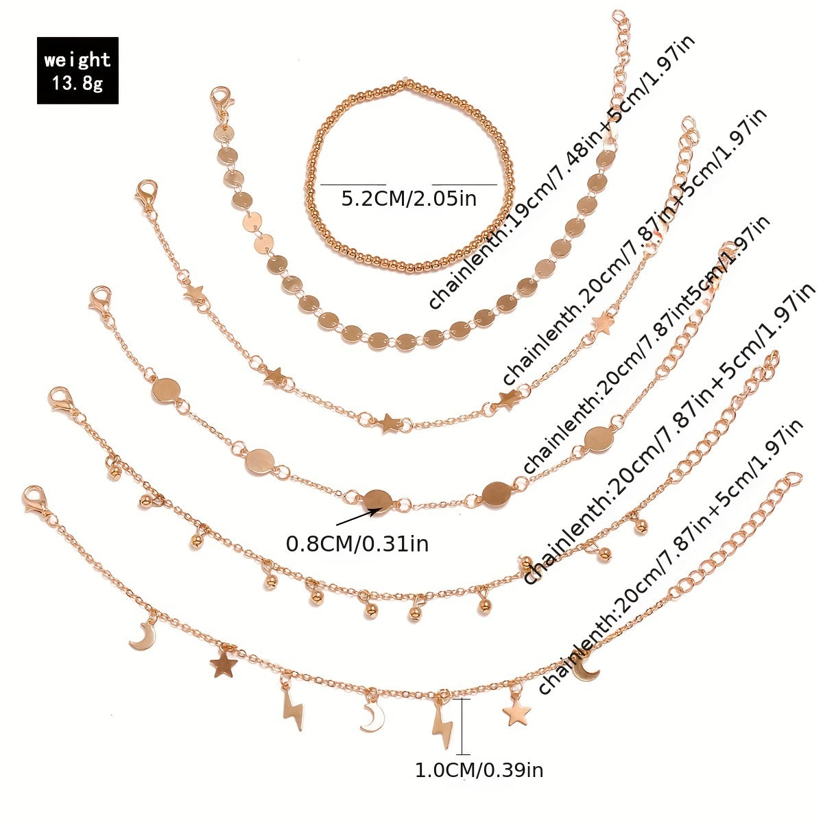 Add style to your outfit with this 6-piece set of men's anklets featuring lightning, moon, star, pentagram, water drop, and tassel designs. Perfect for adding a unique touch to your foot accessories collection.