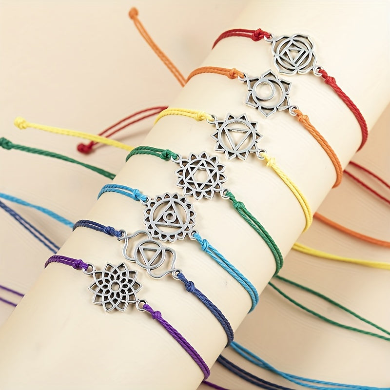 Add a touch of spirituality to your yoga practice with this multicolor braided bracelet featuring the seven chakras. Handmade with care, this bracelet is a beautiful hand decoration.