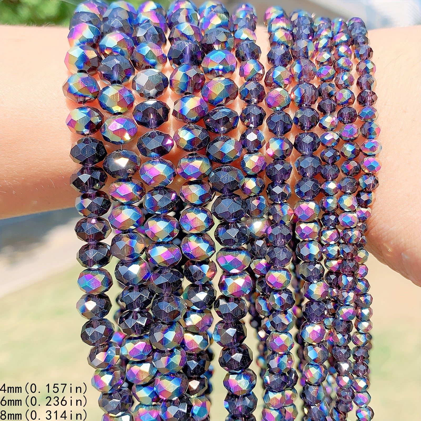 Create stunning jewelry with this set of violet and colorful faceted glass beads. Perfect for DIY bracelets, necklaces, and more.