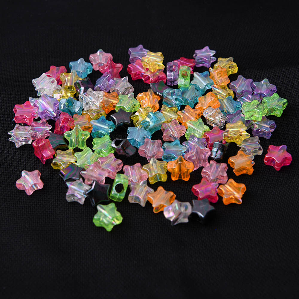 Get creative with these 80 colorful clear acrylic star shaped beads ideal for making bracelets, earrings, and necklaces.