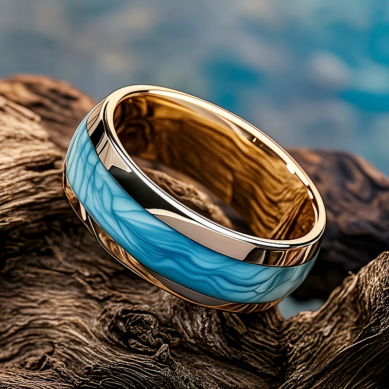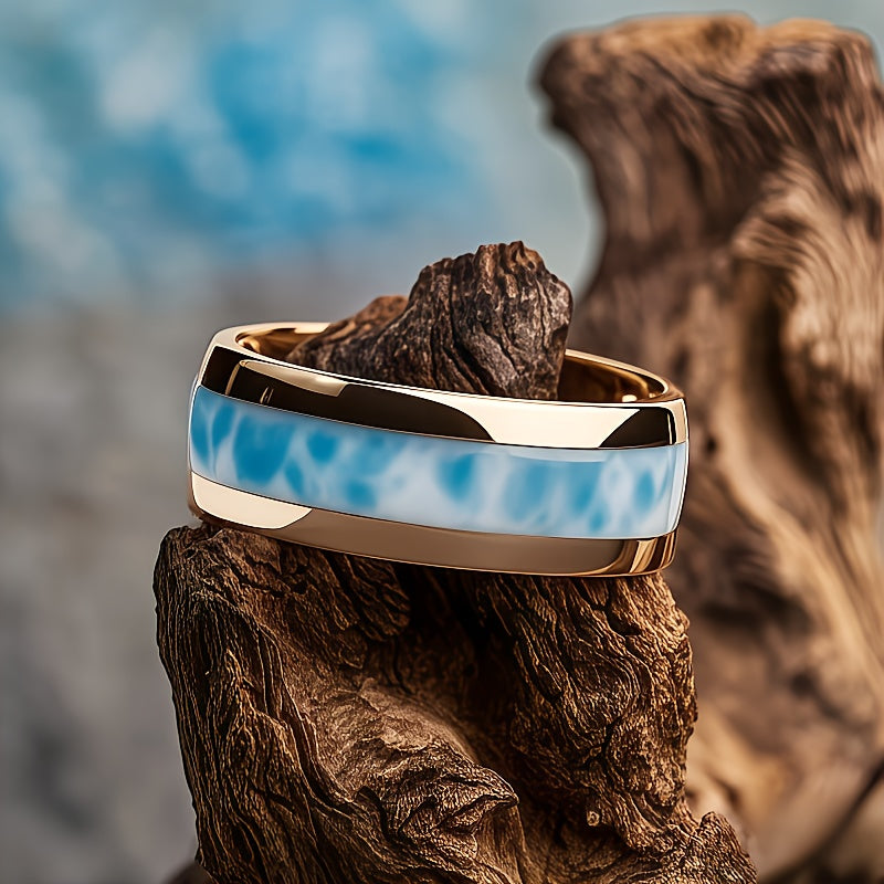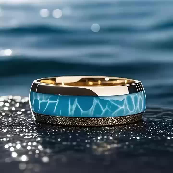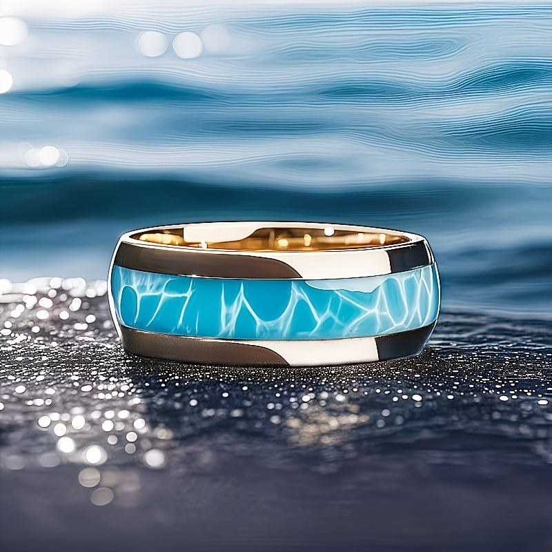 This 8mm stainless steel ring features a creative sea pattern combining and texture design, making it a stylish and unique gift or promise ring.