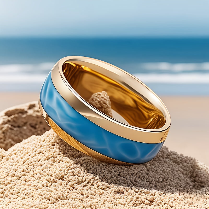 8mm Stainless Steel Ring Sea Pattern Texture Gift Promise Ring