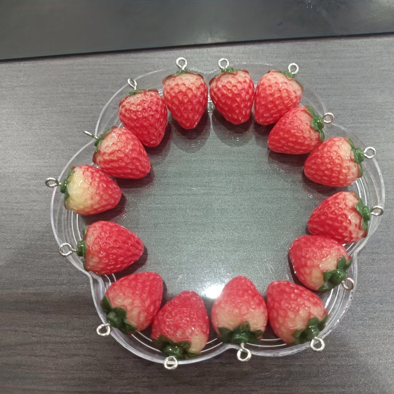 • 8 colorful strawberry resin pendants included