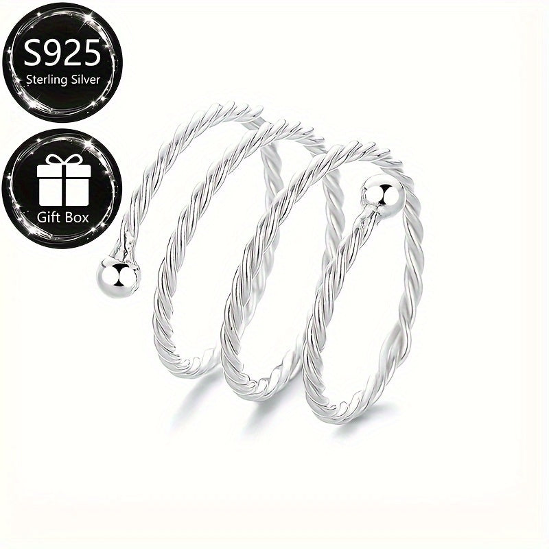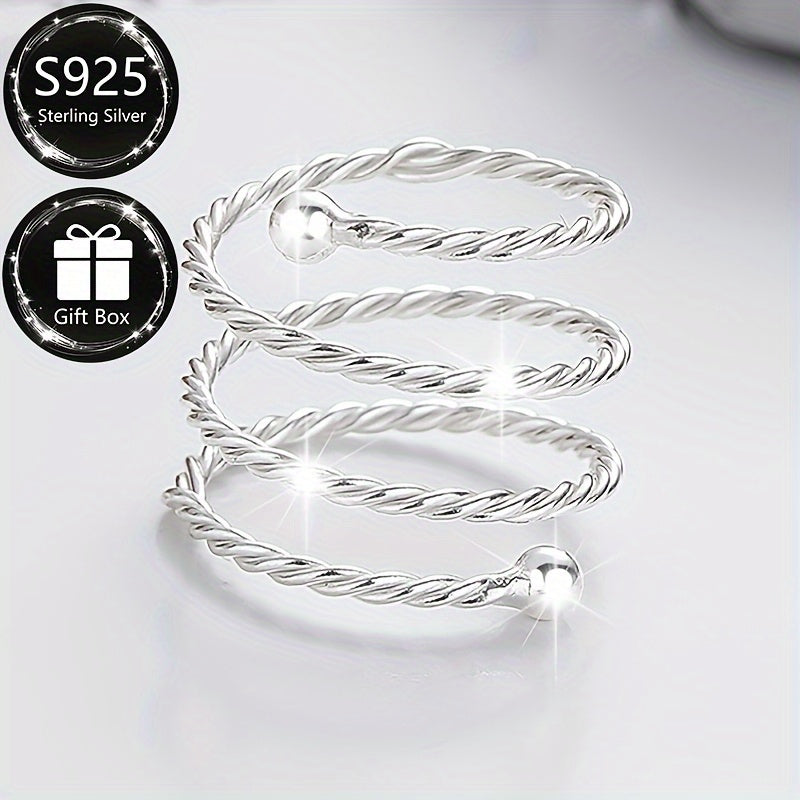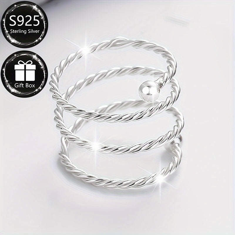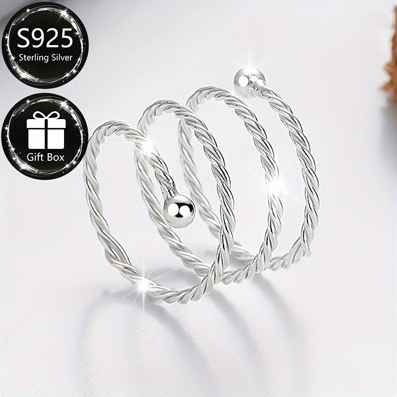This stunning women's ring features a 925 silver spiral layer line design, adjustable opening, and comes with a box, making it perfect for birthdays and anniversaries. Suitable for parties and daily wear.