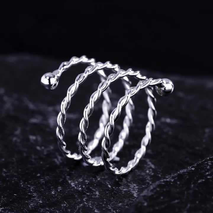 925 Silver Adjustable Spiral Layer Line Women's Ring with Box
