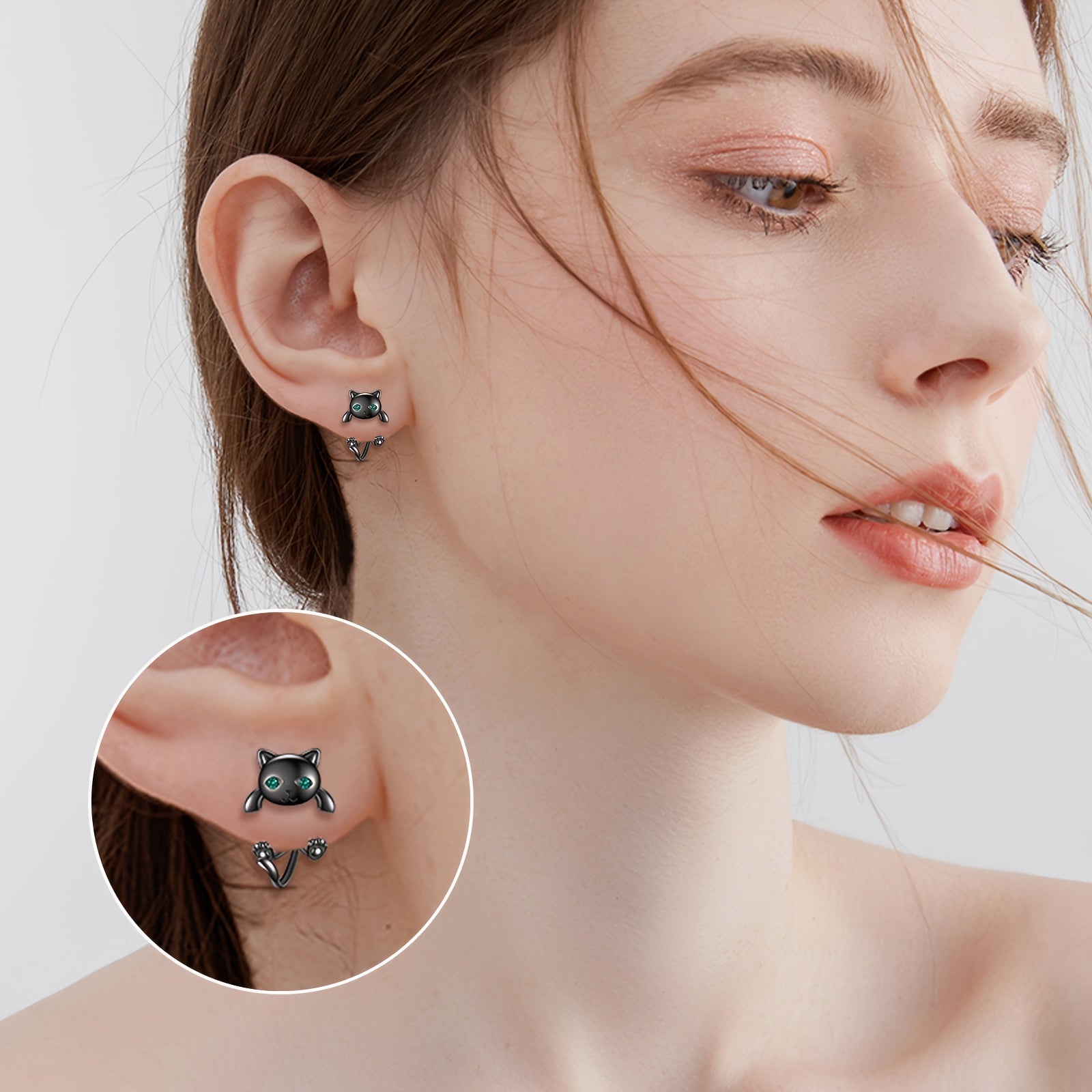 Get a dose of humor with these cat earrings made of 925 sterling silver. Perfect for cat lovers, these funny earrings add a playful touch to any outfit.