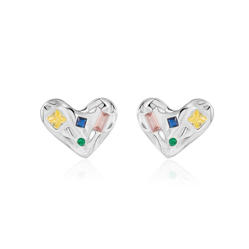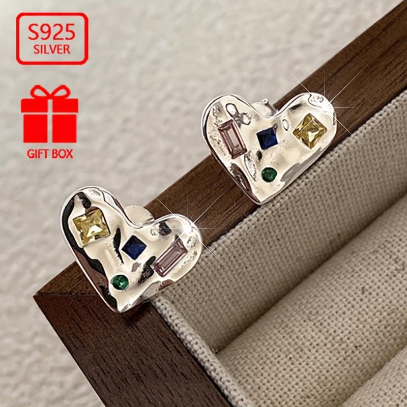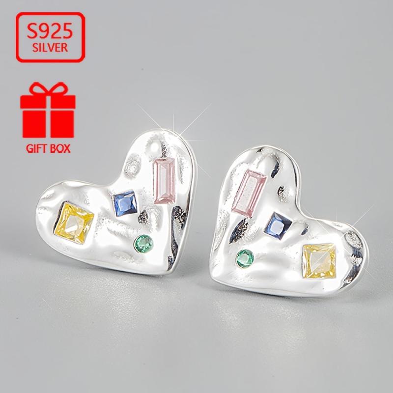 925 Silver Colorful Zirconia Love Earrings Set for Women
