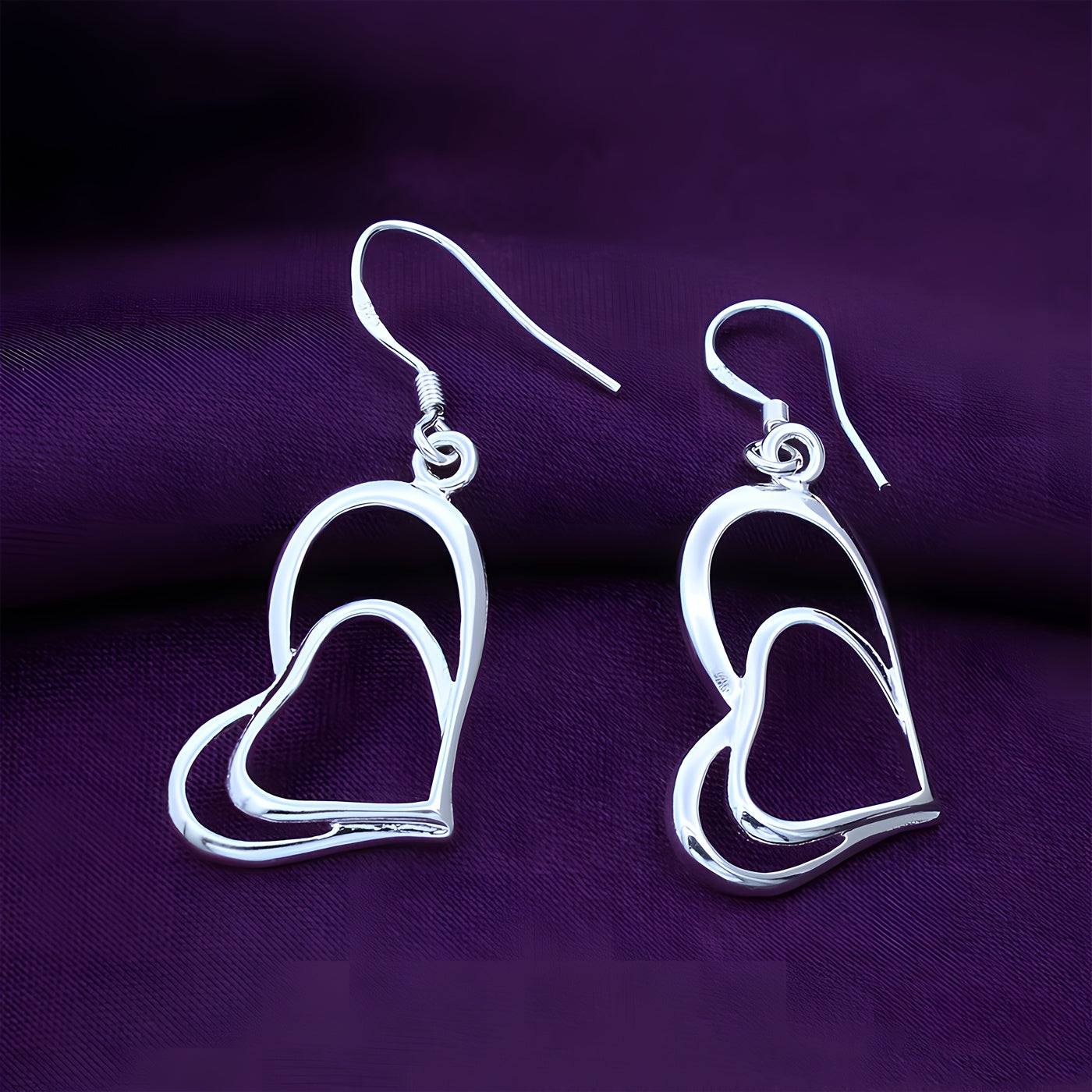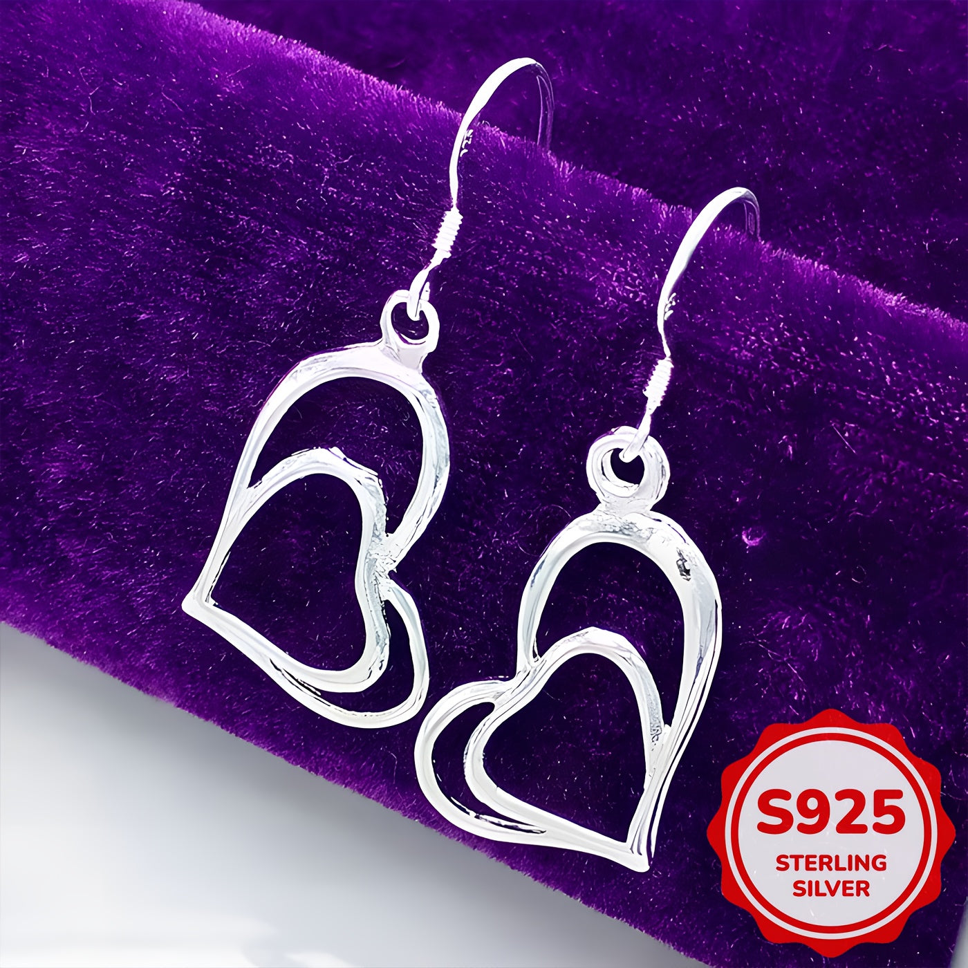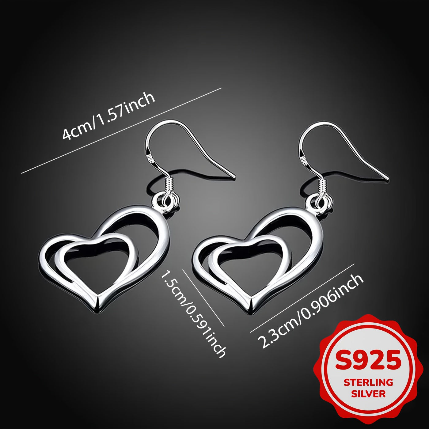 These double heart dangle earrings are made of 925 sterling silver, perfect for women with sensitive skin. They feature a romantic vintage hip hop style design, weighing 3g. Comes in an antioxidant box, making it a perfect gift for any occasion.