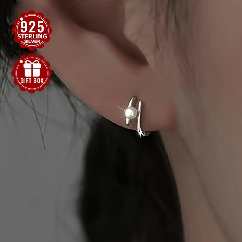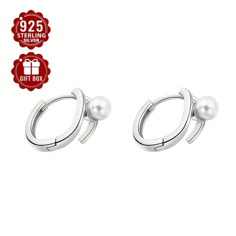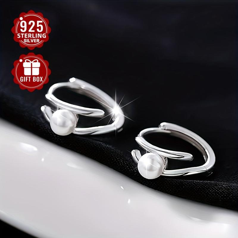 Elegant 925 sterling silver earrings with a double line faux pearl design and French-inspired look. Sophisticated and stylish.