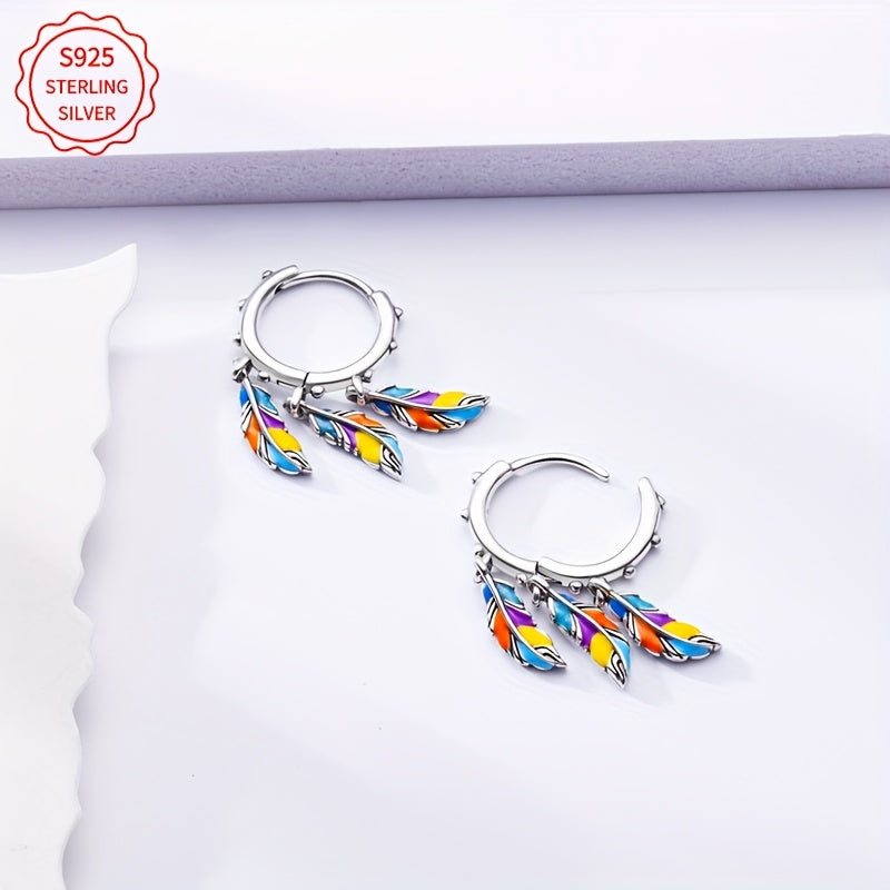 Add a touch of whimsy to your style with these shimmering dreamcatcher earrings. Crafted from 925 sterling silver, these elegant earrings feature colorful feathers that sway with every movement.