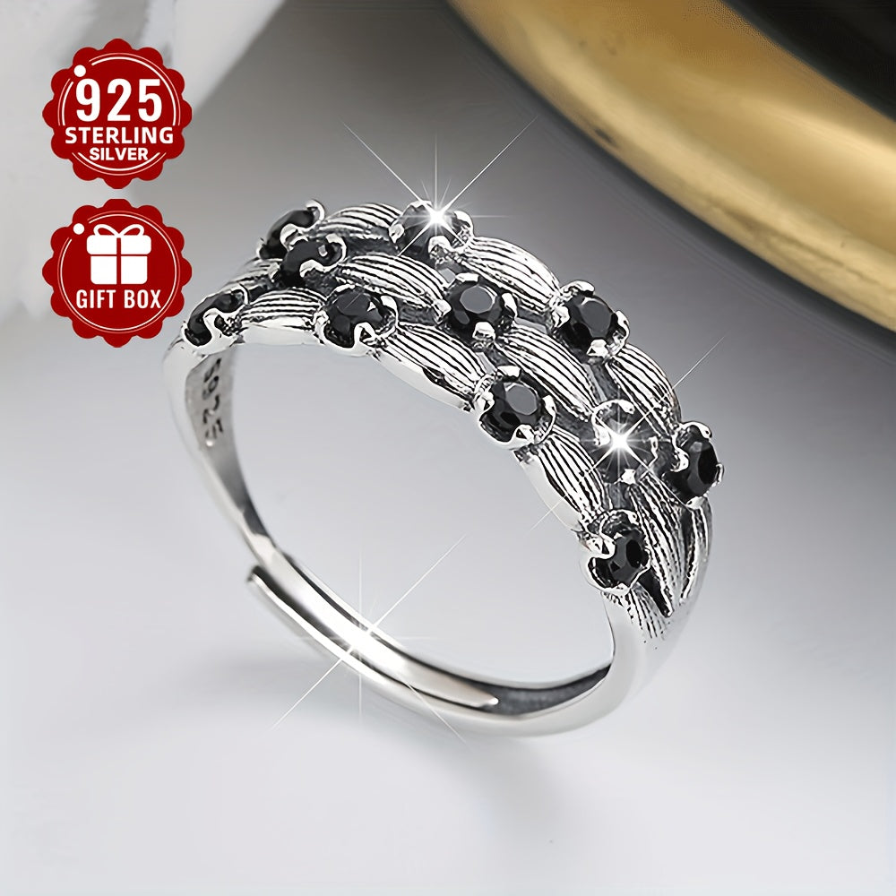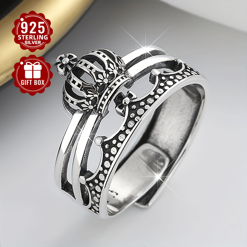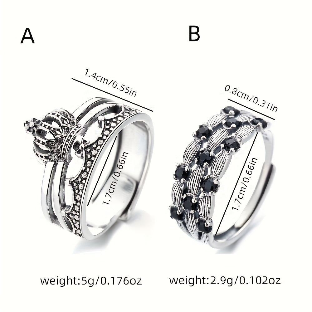 Elegant 925 silver ring set features a retro crown design with synthetic Zirconia stones, perfect for a hip hop style look.