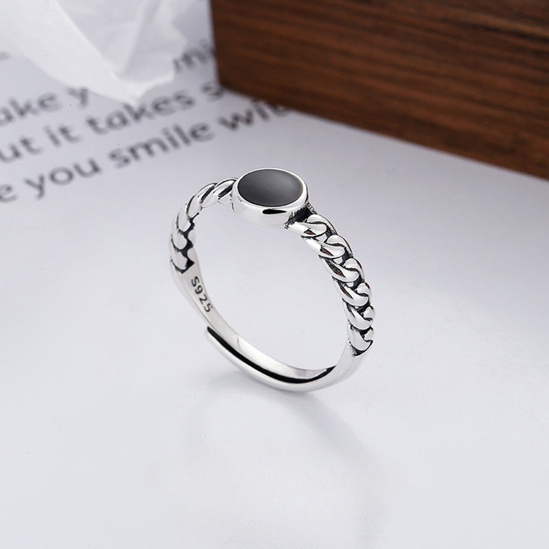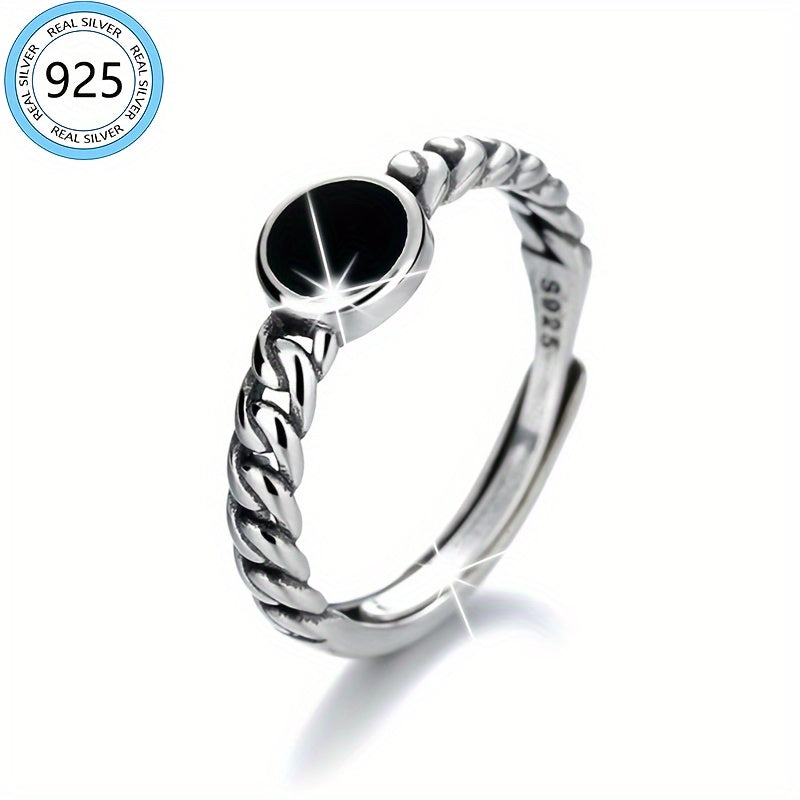 925 Silver Round Drop Glue Ring Twist Retro Hip Hop Finger Jewelry