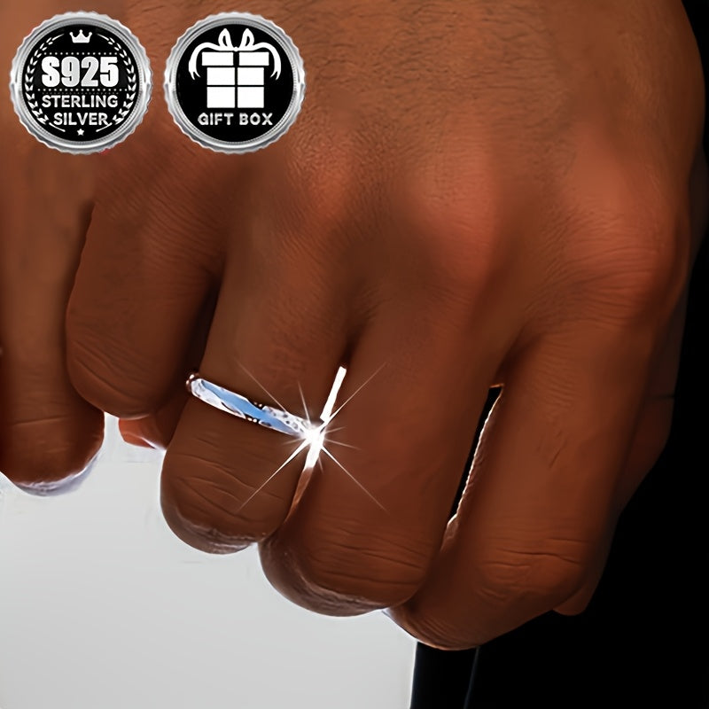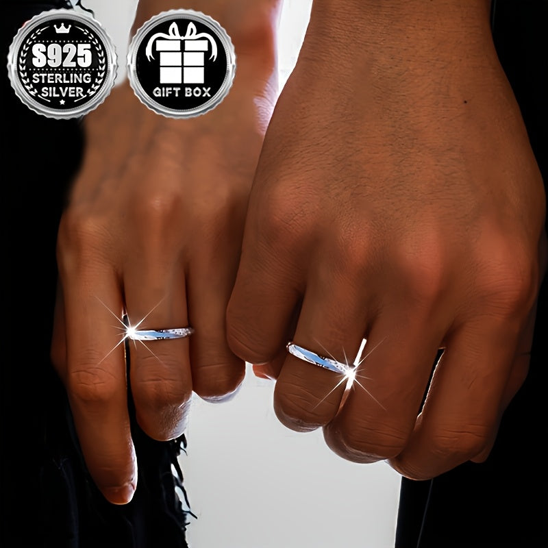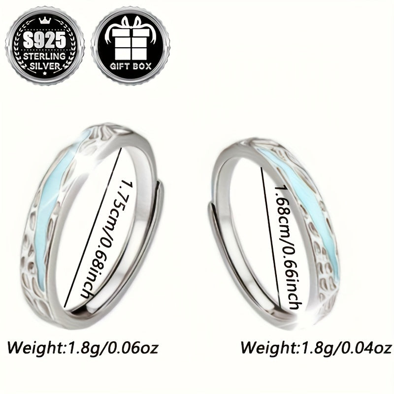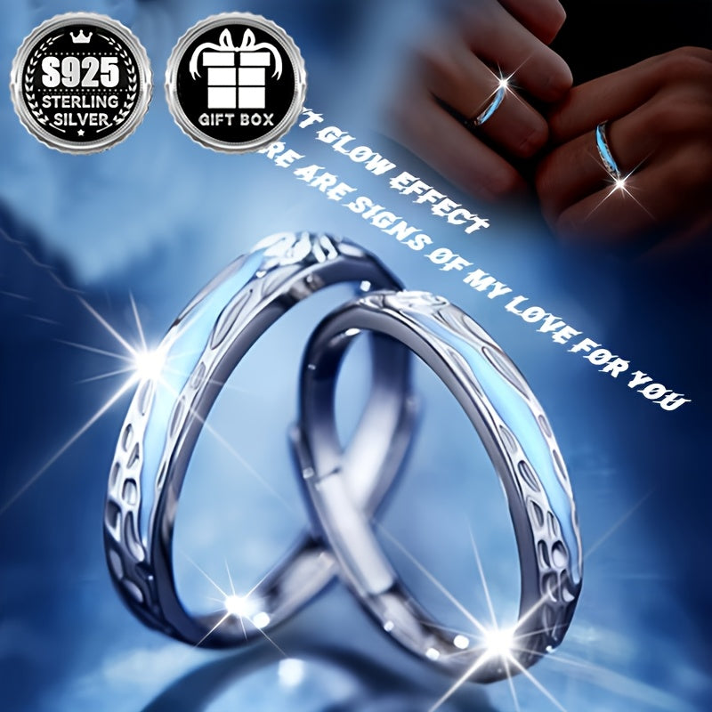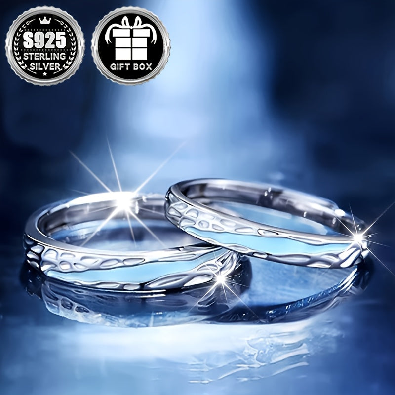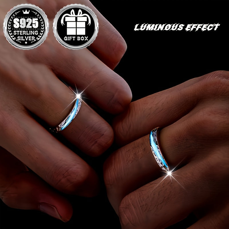 925 Silver Wedding Band Rings for Couples Glow in the Dark Tyndall Effect