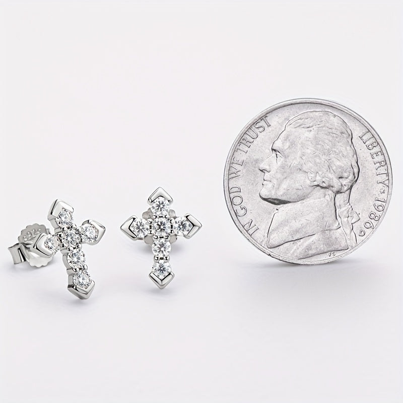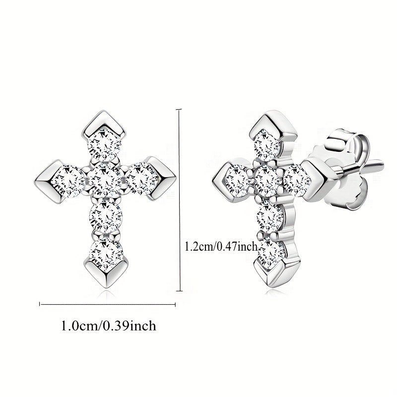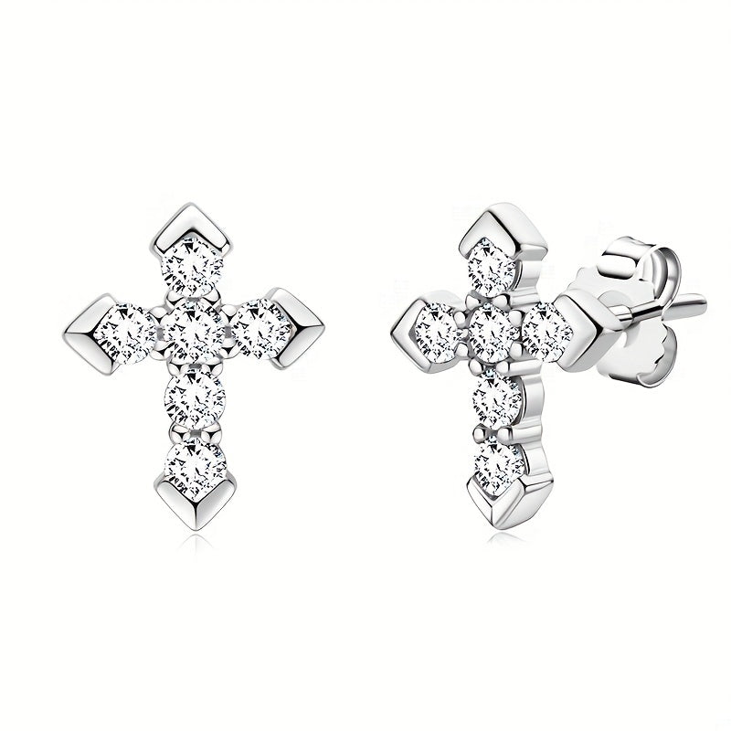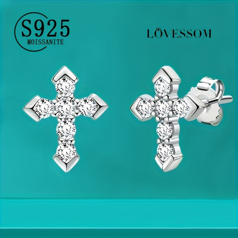 925 Silveryy Moissanite Cross Earrings for Men and Women